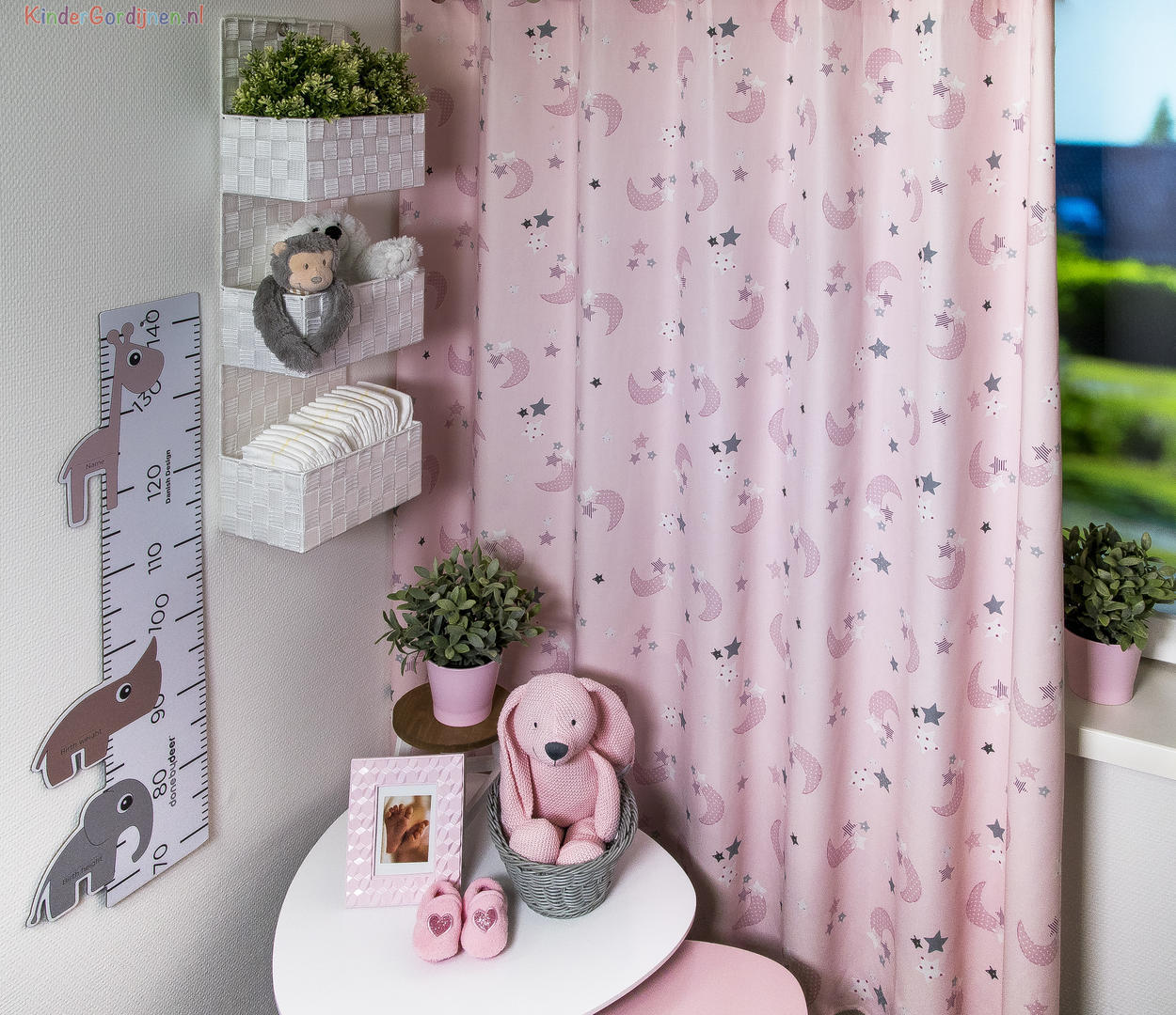 Wat een schitterende kwaliteit gordijnstof! Zien is geloven, zo mooi soepel geweven én maar liefst 280 cm breed! Dat betekent dat het babykamer gordijn meestal naadloos kan worden gemaakt. De is print is gedrukt op een heel fijn geribde stof, wat een vlotte & sportieve uitstraling geeft. Het sterretjes & maantjes patroon is leverbaar in 3 verschillende ondergrondkleuren. Eigentijds blauw- grijs voor de jongenskamer, pastel roze - grijs voor meisjes slaapkamer en camel grijs voor als je liever geheim wilt houden welk lief kleintje er komt slapen. De maan is hier 7 cm groot en samen met de sterren ernaast 9 cm breed. Door het rustig herhalende patroon kan je dit gordijn uitstekend tot de grond laten confectioneren. Wanneer je graag extra verduistering wenst dan optie voeren aanvinken in het bestelproces. Kortom, deze fraaie stofserie is een aanwinst binnen onze enorme collectie!