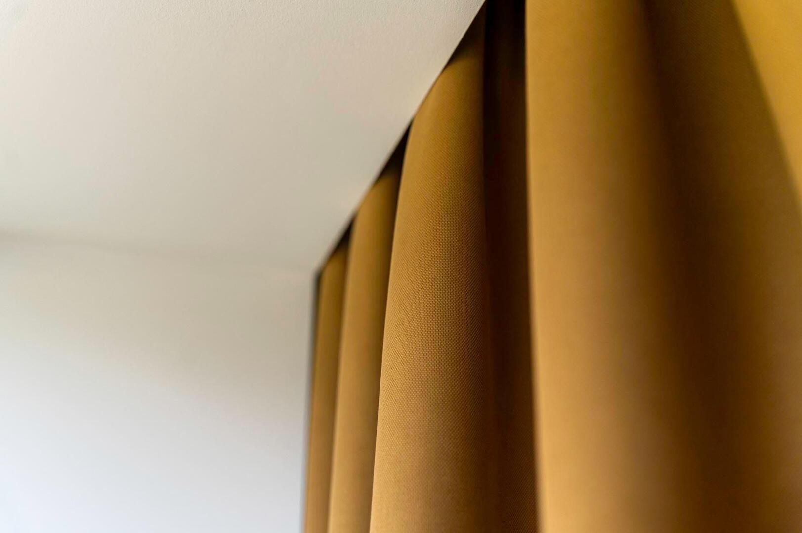 Belize is een brandvertragende blackoutstof die functionaliteit combineert met een gelijkmatig en verzorgd uiterlijk. Door de bijzondere afwerking – zonder zichtbare coating – is zowel de voor- als achterkant uitgevoerd in dezelfde tint. Dit zorgt voor een rustig geheel, zonder harde contrasten of technische lagen die opvallen. De kleur heeft een warme, caramel-okerachtige indruk die moeiteloos opgaat in uiteenlopende interieurs en zich makkelijk laat combineren met verschillende materialen en meubelstukken. Kijk je naar het motief, dan valt op dat de stof bestaat uit een heel gelijkmatig opgebouwd weefbeeld. De kleine, haast korrelachtige puntjes liggen dicht bij elkaar en vormen samen een aaneengesloten patroon dat nergens onderbroken wordt. Hierdoor oogt het geheel strak en stabiel. In de plooien wordt dit nog duidelijker: het patroon blijft overal even dicht, waardoor de stof een solide en krachtige aanblik heeft zonder dat er drukte ontstaat. Doordat het licht wordt tegengehouden, komen de schaduwen in de plooien mooi tot hun recht en krijgt de stof een rustig diepte-effect. Belize is bij uitstek geschikt voor ruimtes waar zowel verduistering als brandveiligheid belangrijk is — denk aan slaapkamers, hotels, werkkamers en ruimtes waar een serene achtergrond gewenst is. De blackoutkwaliteit zorgt voor volledige lichtdemping, wat prettig is voor mensen die gevoelig zijn voor licht of graag een gelijkmatige verduistering willen. Tijdens het bestelproces kun je kiezen voor een extra voering. Deze brengt meerdere voordelen met zich mee: