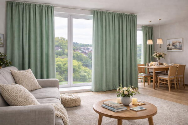 Groene gordijnen voor in de woonkamer