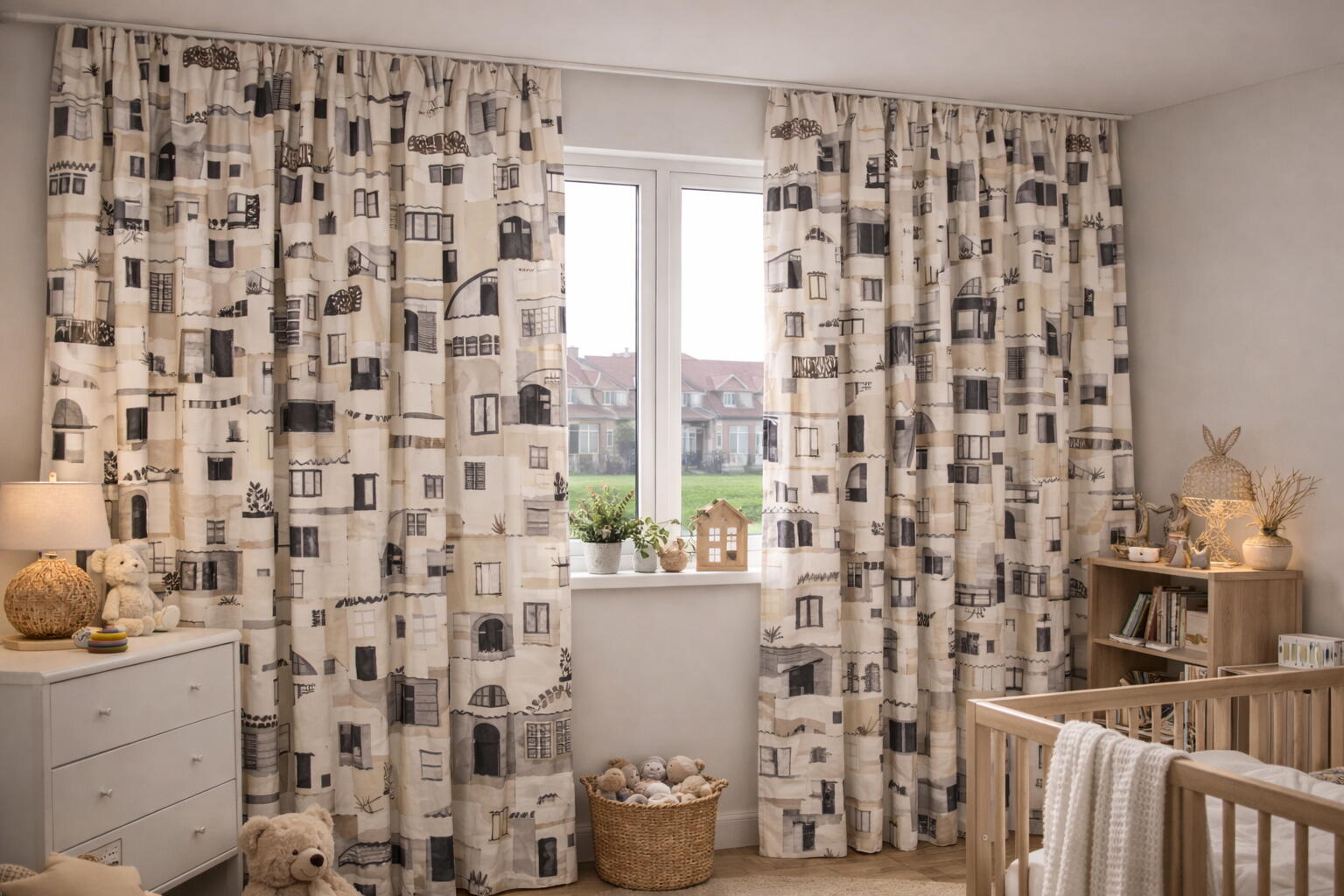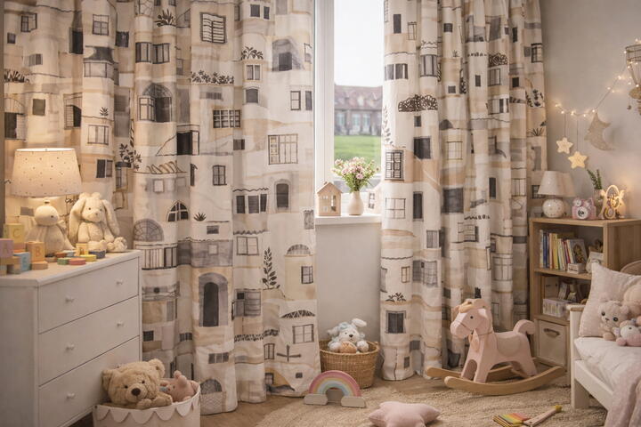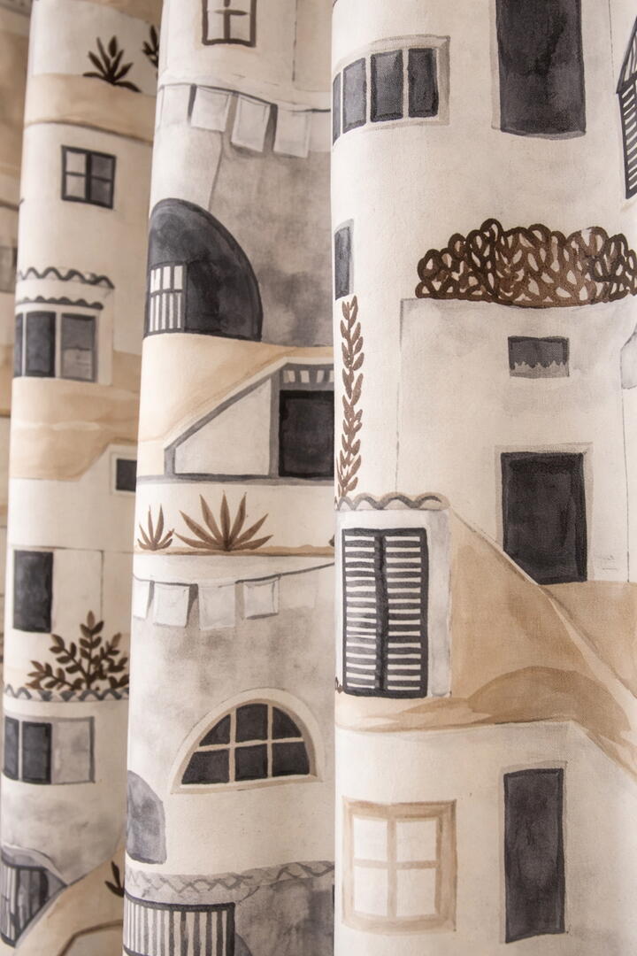 Dit kindergordijn brengt het stedelijke aanzicht van een charmante Zuid-Europese stad tot leven, waardoor een speels en avontuurlijk gevoel ontstaat in de kinderkamer. Laat de kinderen wegdromen terwijl ze omringd worden door de magie en het karakter van deze prachtige stijl.