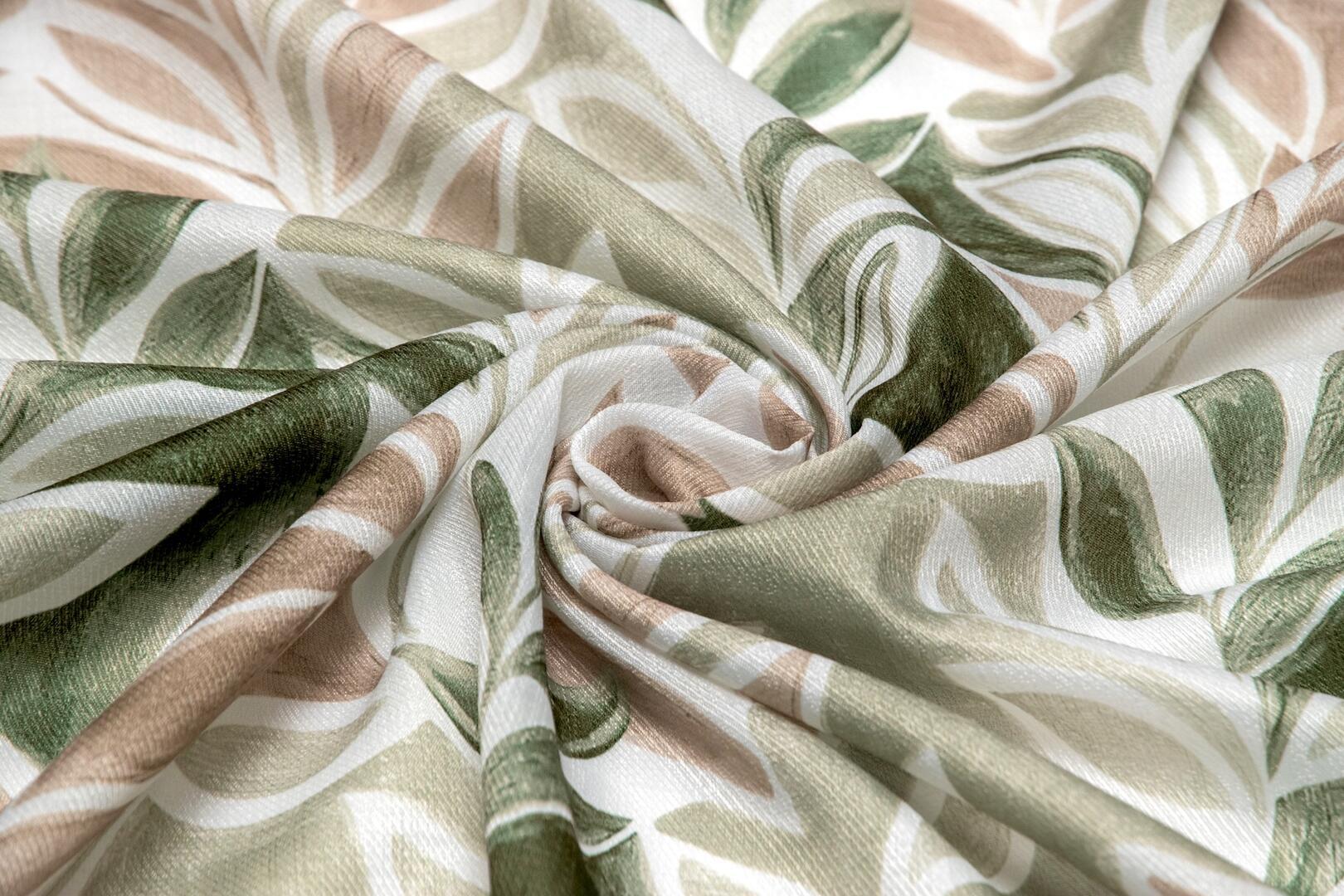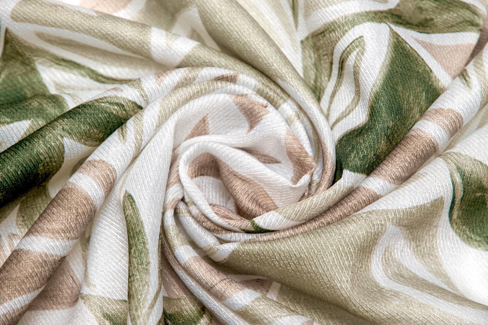 Het gordijn Breeze valt op door het speelse, botanische dessin waarin ranke takken en langgerekte bladeren elkaar in een vloeiende beweging opvolgen. Het patroon lijkt met een losse hand geschilderd, waarbij de vormen licht overlappen en subtiel in elkaar overvloeien. Hierdoor ontstaat een levendig geheel met een zachte uitstraling. De afwisseling tussen volle en transparantere delen in het motief zorgt voor diepte, terwijl de herhaling rust brengt.