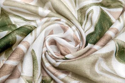 De stof heeft een fijne, licht open geweven structuur die typerend is voor een inbetween kwaliteit. Hierdoor valt het gordijn soepel en ontstaan er volle, zachte plooien. Het materiaal laat daglicht op een prettige manier door, waardoor de ruimte licht blijft terwijl inkijk wordt verminderd. De print is gelijkmatig en scherp op de stof aangebracht, waarbij de subtiele textuur van het weefsel zichtbaar blijft en bijdraagt aan de uitstraling.