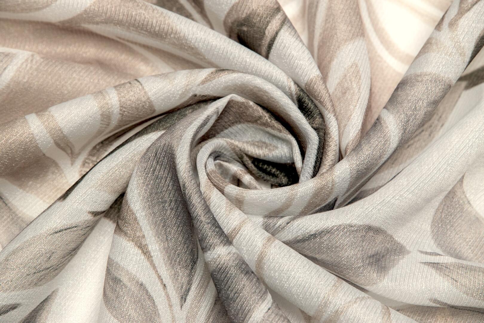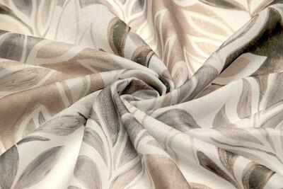 Het gordijn Breeze valt op door het speelse, botanische dessin waarin ranke takken en langgerekte bladeren elkaar in een vloeiende beweging opvolgen. Het patroon lijkt met een losse hand geschilderd, waarbij de vormen licht overlappen en subtiel in elkaar overvloeien. Hierdoor ontstaat een levendig geheel met een zachte uitstraling. De afwisseling tussen volle en transparantere delen in het motief zorgt voor diepte, terwijl de herhaling rust brengt.