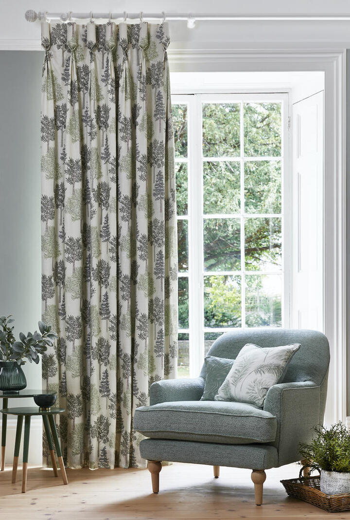 Dat geldt zeker ook voor deze gordijnstof met de naam Coppice, een unieke gordijnstof met een bloem en bladmotieven dessin.