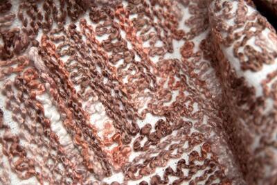 De productie van deze stof is een zorgvuldig samenspel van machinale precisie en handmatig werk. Het dradenmotief wordt laag voor laag aangebracht in een traag en geconcentreerd proces, waarbij elke stap minuten in beslag neemt. Deze werkwijze resulteert in een uitgesproken textuur met duidelijke diepte en verklaart de hogere prijsklasse ten opzichte van standaard gordijnstoffen. Door dit intensieve maakproces voelt elke meter stof rijk, gelaagd en tastbaar aan — een kwaliteit die direct merkbaar is zodra het materiaal wordt vastgepakt.