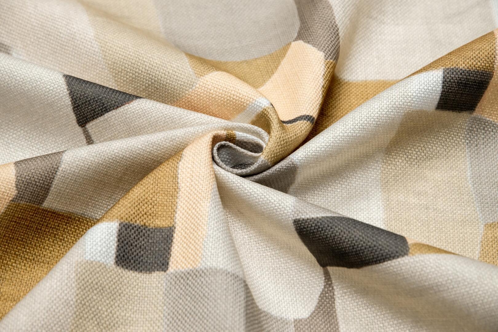Het Eastwood gordijn brengt karakter en stijl in je woning. Met een intrigerend geometrisch patroon, bestaande uit overlappende vormen in harmonieuze tinten, voegt het een moderne twist toe aan uw interieur. Deze gordijnen zijn verkrijgbaar in vier sprekende kleuren: de sfeervolle okerkleur (zoals op de foto), een kalme zandkleur, een zachte lichtblauwe tint met een vleugje mint, en terrakleur. Dankzij de optionele voeringen biedt het gordijn niet alleen extra isolatie in zowel koude als warme maanden, maar het helpt ook bij het dempen van geluid en het beschermen tegen verkleuring door zonlicht.