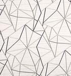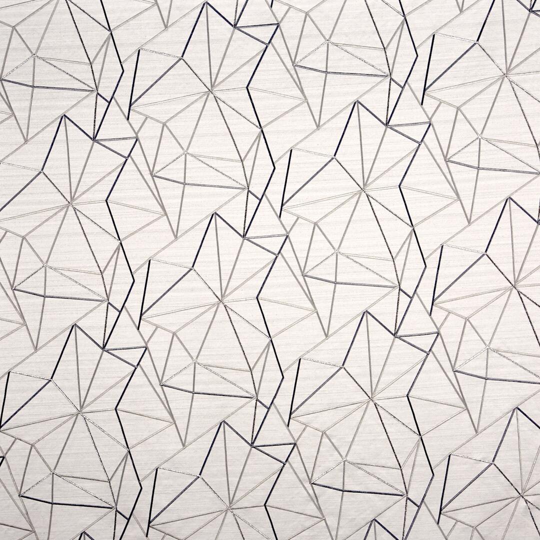Dit bijzondere overgordijn kenmerkt zich door een verfijnd patroon van geometrische lijnen, geborduurd met diverse garens, waaronder glanzende en matte tinten, afgestemd op kleur. Het productieproces is intensief en tijdrovend, doordat de draden van het patroon met tal van naalden wordt ingestikt blijft deze stof geheel exclusief en uniek.