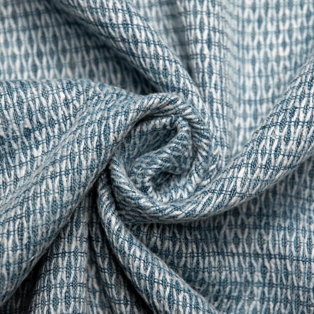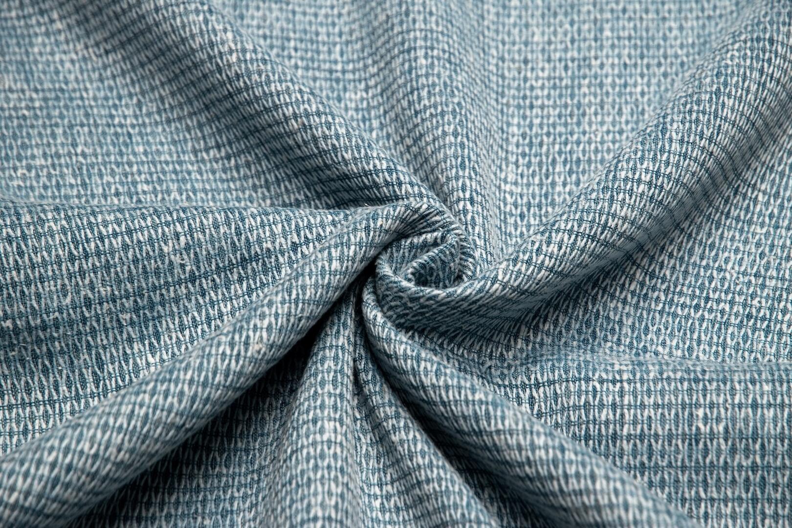 Gandi is een kamerhoog gordijn met een verfijnde, grafische weefstructuur die direct zichtbaar is in de stof zelf – geen print, maar een patroon dat ontstaat door het weven. In de stof is een regelmatig herhaald motief te zien van smalle, verticale V-vormige schakeringen die samen een rustig ritme vormen over het gehele oppervlak. Dit patroon is subtiel, maar duidelijk aanwezig en geeft het doek een mooie dieptewerking zodra het licht erop valt. De structuur is één van de sterke punten van Gandi. Het doek is opgebouwd uit fijne, strak geweven draden die samen een gelijkmatig raster vormen. Daaroverheen lopen iets dikkere inslagdraden die het V-patroon creëren. Hierdoor ontstaat een licht reliëf en een zachte schaduwwerking in het oppervlak. De stof voelt textielachtig en stevig aan, maar blijft tegelijk lichtdoorlatend en soepel in de plooi. Wanneer daglicht door het gordijn valt, wordt het licht zacht gefilterd. Het patroon blijft zichtbaar, wat de ruimte een gelaagde uitstraling geeft zonder het zicht volledig te blokkeren. Daardoor is Gandi zeer geschikt voor woonkamers, eetkamers en grote raampartijen waar een goede balans tussen privacy en licht gewenst is. Doordat de stof kamerhoog wordt geleverd, loopt het gordijn uit één stuk van plafond tot vloer. In combinatie met bijvoorbeeld een vlinder, of een rustige wave-plooi komt het verticale patroon extra goed tot zijn recht en wordt de hoogtewerking van de ruimte versterkt. Gandi is verkrijgbaar in zes zorgvuldig gekozen tinten, elk met een eigen karakter: