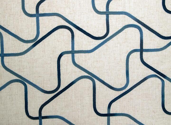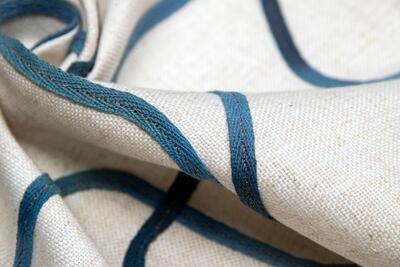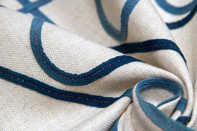 De Lauder is een uniek gordijn dat de aandacht trekt door zijn bijzondere motief van opgenaaide linten. Op de linnen-katoen stof zijn sierlijke, golvende linten bevestigd, waardoor een levendig en speels effect ontstaat dat opvalt door diepte en textuur. Het vervaardigen van deze stoffen is een zorgvuldig proces dat zeer langzaam verloopt, vaak duurt het een volledige dag om slechts één rol te produceren. Hierdoor is dit gordijn een zeldzaam en exclusief item dat een bijzondere uitstraling aan uw raam geeft. Wilt u de stof eerst in het echt zien en voelen voordat u een op maat gemaakt gordijn bestelt? U kunt een knipstaal aanvragen, dat meestal dezelfde dag nog wordt verzonden.