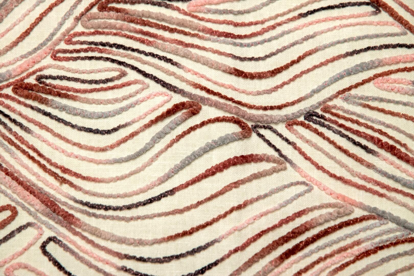 De Liyana-gordijnstof is een waar kunstwerk, met een uniek patroon van gehaakte sliertjes die in een verrassende, golvende opbouw zijn aangebracht. Het resultaat is een levendig en sculpturaal effect dat direct de aandacht trekt. Dit soort stof is uiterst zeldzaam en wordt met zorg geproduceerd, wat betekent dat het vaak een hele dag duurt om slechts één rol te maken. De stof is verkrijgbaar in twee mooie kleuren: een warme terracotta-bronsachtige tint, getoont op de sfeerfoto, en een combinatie van roze, fuchsia en grijstinten voor een zachte, rustige uitstraling. Wil je eerst een proefstuk zien en voelen voordat je een op maat gemaakt gordijn bestelt? Dat kan! Vraag een knipstaal aan, dat meestal dezelfde dag nog wordt verzonden, zodat je de textuur en kleur goed kunt beoordelen.