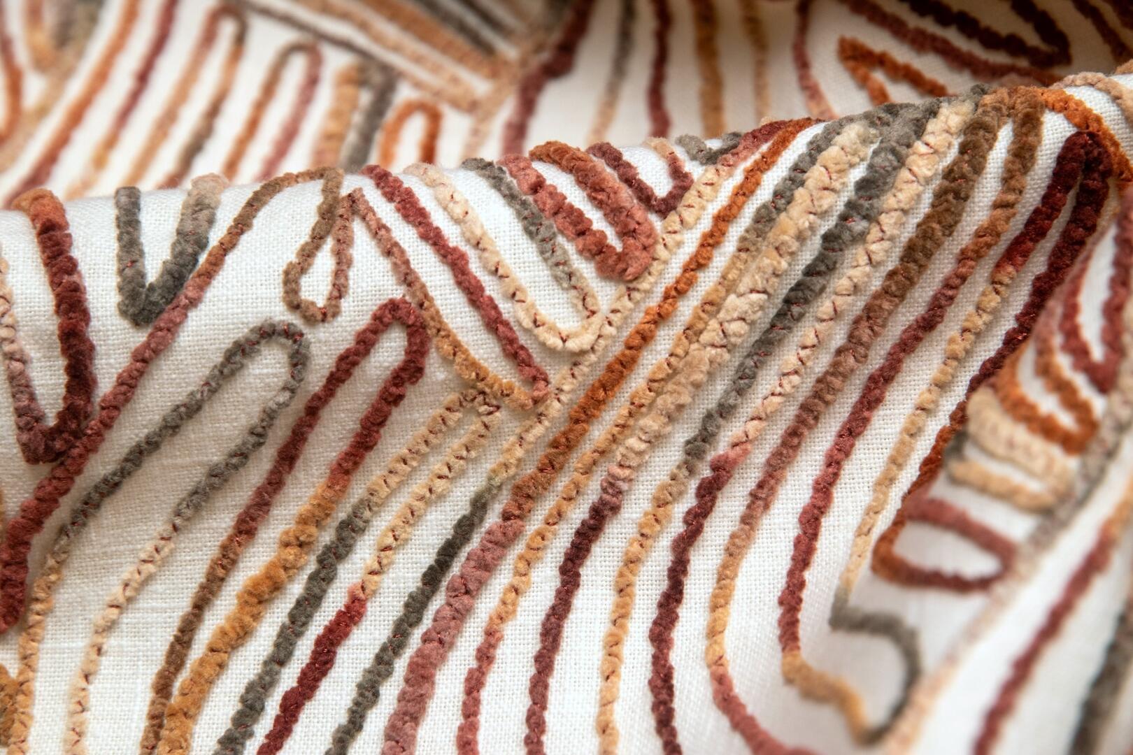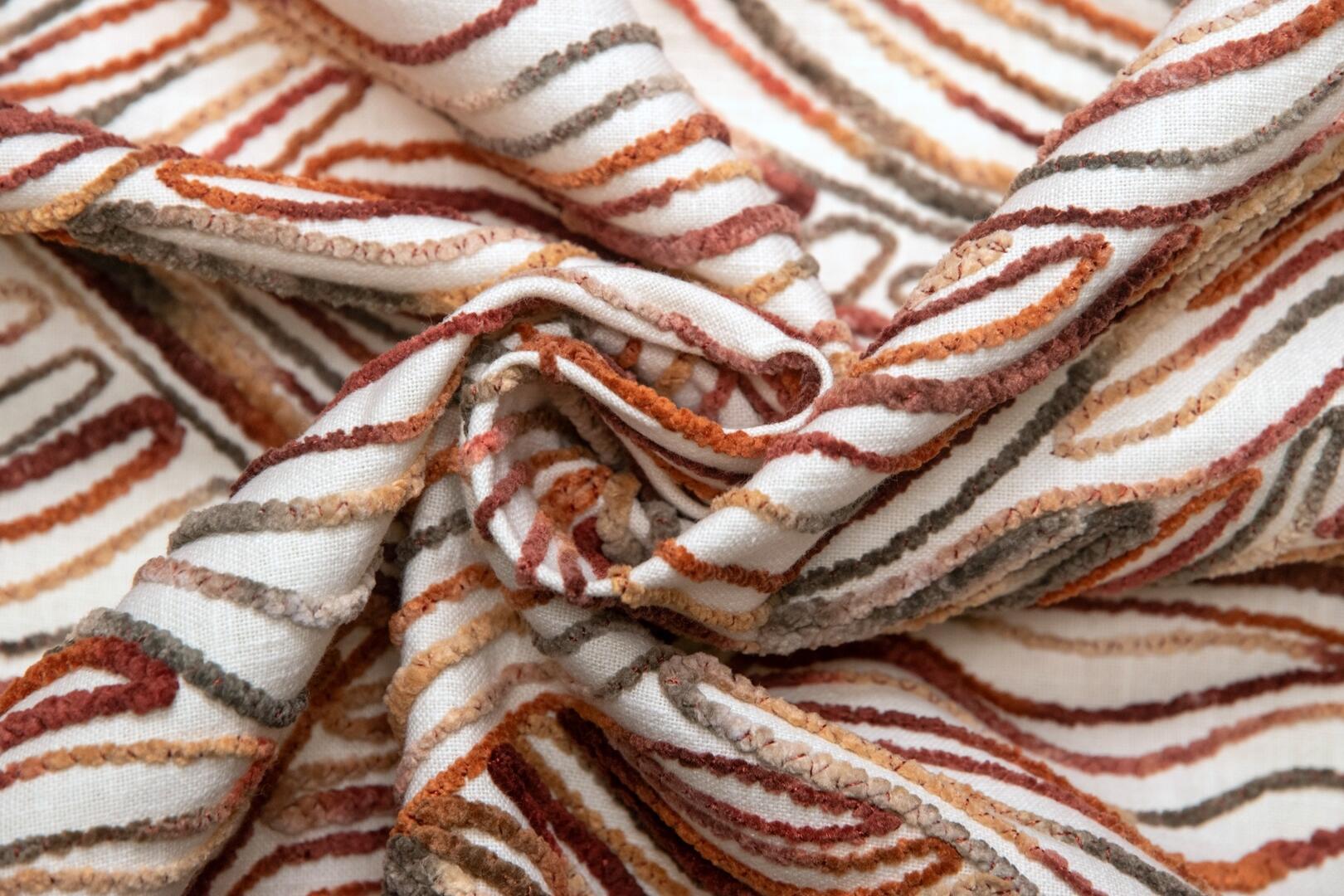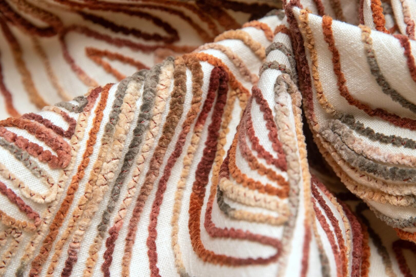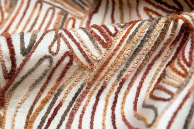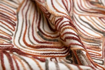 De Liyana-gordijnstof is een waar kunstwerk, met een uniek patroon van gehaakte sliertjes die in een verrassende, golvende opbouw zijn aangebracht. Het resultaat is een levendig en sculpturaal effect dat direct de aandacht trekt. Dit soort stof is uiterst zeldzaam en wordt met zorg geproduceerd, wat betekent dat het vaak een hele dag duurt om slechts één rol te maken. De stof is verkrijgbaar in twee mooie kleuren: een warme terracotta-bronsachtige tint, getoont op de sfeerfoto, en een combinatie van roze, fuchsia en grijstinten voor een zachte, rustige uitstraling. Wil je eerst een proefstuk zien en voelen voordat je een op maat gemaakt gordijn bestelt? Dat kan! Vraag een knipstaal aan, dat meestal dezelfde dag nog wordt verzonden, zodat je de textuur en kleur goed kunt beoordelen.