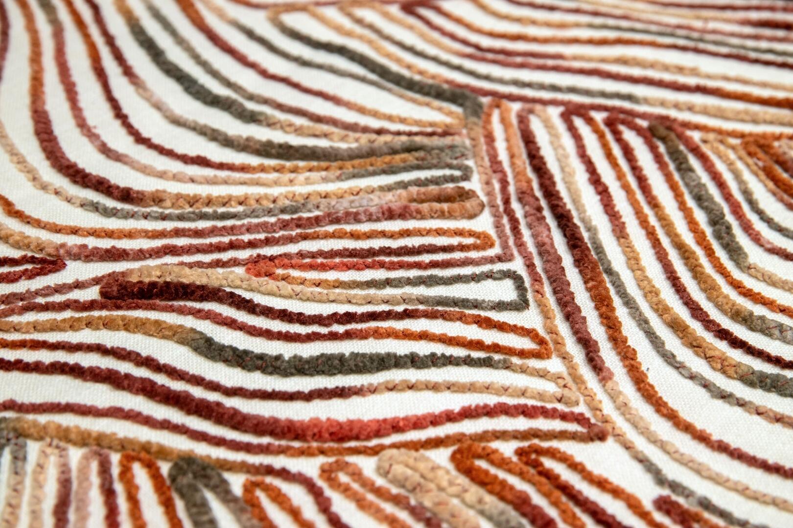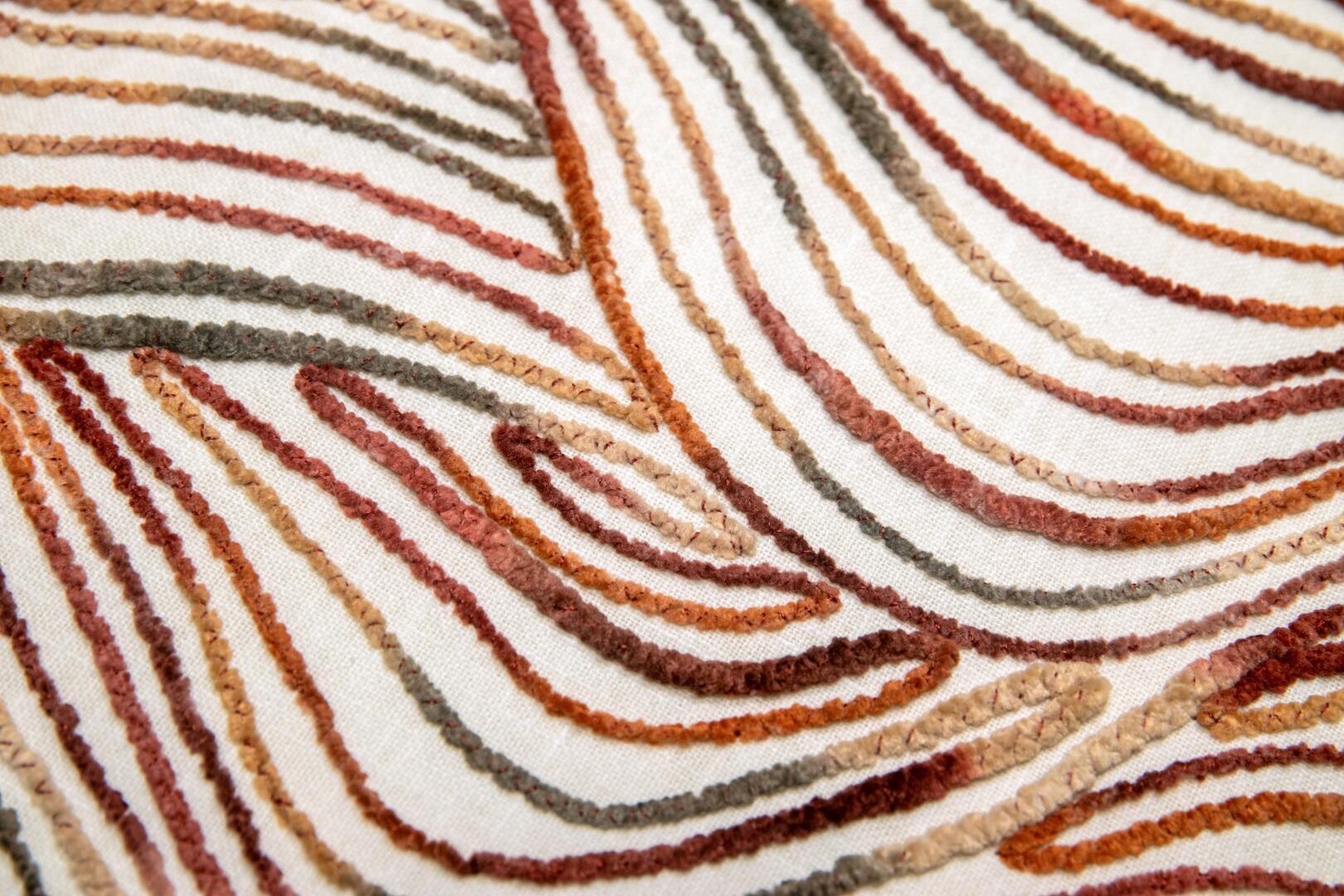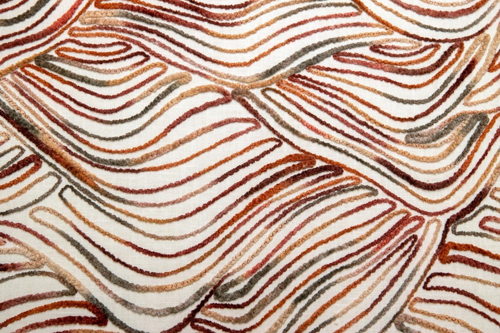 De Liyana-gordijnstof is een waar kunstwerk, met een uniek patroon van gehaakte sliertjes die in een verrassende, golvende opbouw zijn aangebracht. Het resultaat is een levendig en sculpturaal effect dat direct de aandacht trekt. Dit soort stof is uiterst zeldzaam en wordt met zorg geproduceerd, wat betekent dat het vaak een hele dag duurt om slechts één rol te maken. De stof is verkrijgbaar in twee mooie kleuren: een warme terracotta-bronsachtige tint, getoont op de sfeerfoto, en een combinatie van roze, fuchsia en grijstinten voor een zachte, rustige uitstraling. Wil je eerst een proefstuk zien en voelen voordat je een op maat gemaakt gordijn bestelt? Dat kan! Vraag een knipstaal aan, dat meestal dezelfde dag nog wordt verzonden, zodat je de textuur en kleur goed kunt beoordelen.