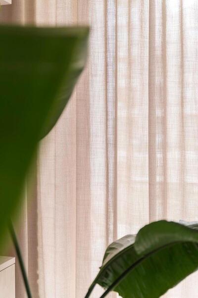 Luce is ontworpen voor ruimtes waar daglicht een belangrijke rol speelt. De stof laat het licht op een rustige manier binnenkomen, waardoor de omgeving helder blijft zonder dat je inlevert op sfeer of geborgenheid. Door de relatief dichte inbetween-kwaliteit voelt Luce voller aan dan veel andere transparante stoffen, wat haar geschikt maakt voor zowel woon- als werkruimtes waar een subtiel evenwicht tussen privacy en licht gewenst is. Wanneer je naar het weefbeeld kijkt, zie je een speels patroon dat bestaat uit fijne, ongelijkmatige lijnen die elkaar kruisen. Deze lijnen vormen een licht golvend raster dat op sommige plekken hechter en op andere plekken losser oogt. De verticale banen in de stof zorgen daarbij voor een rustig ritme: in de plooien ontstaat een afwisseling van smallere en bredere stroken waarin het licht telkens net anders wordt gevangen. Het geheel geeft de indruk van een natuurlijk, ritmisch lijnenspel dat moeiteloos past in uiteenlopende interieurs.