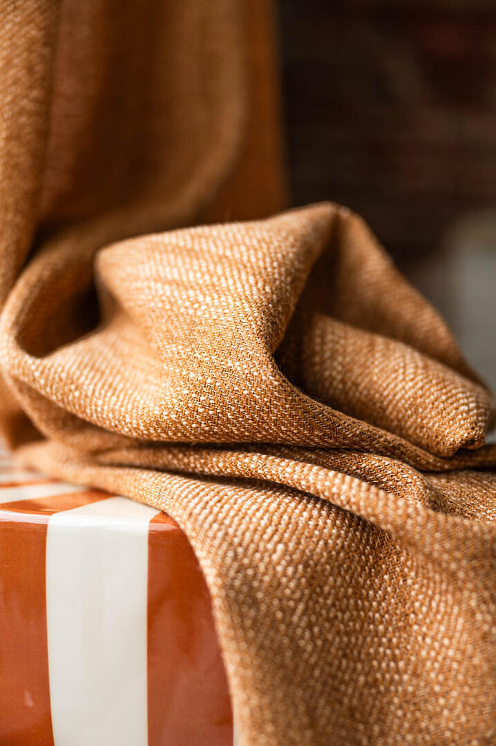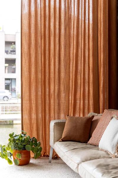 Melange is een sfeervol gordijn dat met zijn linnenachtige textuur direct een behaaglijke indruk geeft. De kamerhoge uitvoering zorgt voor een rustig geheel, doordat er geen onderbrekingen of naden zichtbaar zijn. Dit maakt Melange ideaal voor wie houdt van een verzorgde, gelijkmatige uitstraling in huis. Wanneer je naar het weefbeeld kijkt, zie je een levendig motief dat bestaat uit talloze fijne schakeringen die in horizontale richting subtiel met elkaar verweven lijken. Deze kleine variaties geven diepte en maken dat het gordijn vanaf verschillende hoeken telkens net even anders oogt. In de plooien ontstaat een speels samenspel tussen lichte en iets donkerder ogende stukjes, wat het geheel een dynamisch, maar tegelijk ingetogen karakter geeft. Door de soepele manier waarop Melange valt, sluit het mooi aan bij uiteenlopende interieurstijlen. De doordachte kleurtint maakt het gemakkelijk te combineren met zowel rustige, natuurlijke tonen als met uitgesproken woonaccessoires. Wil je Melange graag eerst ervaren voordat je een op maat gemaakt gordijn bestelt? Vraag dan een knipstaal aan om het materiaal zelf te kunnen beoordelen. Meestal wordt dit dezelfde dag nog verzonden.