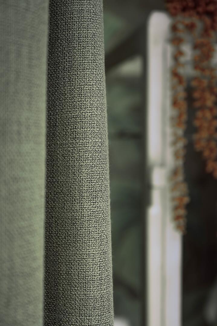 Notte is een stevige en rijk ogende stof die zorgt voor een aangename basis in je woning. Dankzij de dichte weving voelt het gordijn betrouwbaar en omsluitend aan, ideaal voor wie graag meer privacy en een rustige achtergrond wil zonder dat de ruimte zwaar aanvoelt. Wanneer je inzoomt op het patroon, zie je een ritmisch samenspel van kleine, gelijkmatige punten die dicht naast elkaar liggen. Deze minuscule schakeringen vormen samen een strak, haast korrelig lijnenspel dat over de hele stof gelijkmatig doorloopt. Door de manier waarop het licht erop valt, lijken sommige delen iets compacter en andere juist luchtiger, waardoor het motief een subtiel diepteverschil laat zien. In de plooien worden deze fijne details nog duidelijker: het patroon lijkt daar dichter te worden, wat zorgt voor een mooi visueel ritme dat het gordijn een sterke, consistente uitstraling geeft.