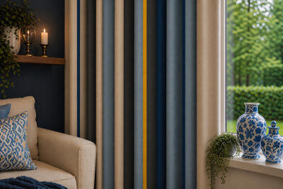 Het gordijn Thyrza is een uitgesproken keuze voor wie karakter en rust wil combineren in het interieur. Deze stof uit een exclusieve collectie valt op door zijn stevige, zware kwaliteit katoen en het zorgvuldig opgebouwde streeppatroon dat diepte en ritme aan de ruimte geeft.