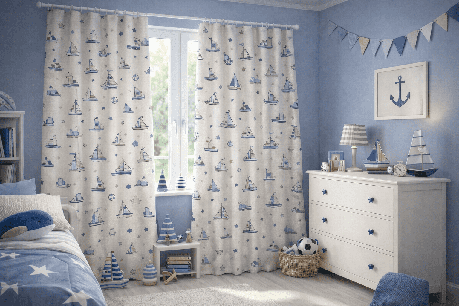Happy Boy – Geborduurd zeilboten-gordijn