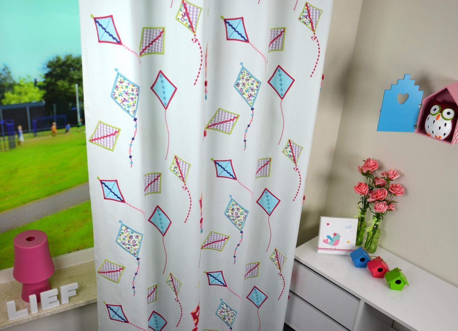 Gordijn Up and Away – Speelse vliegers met voelbare details