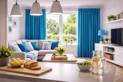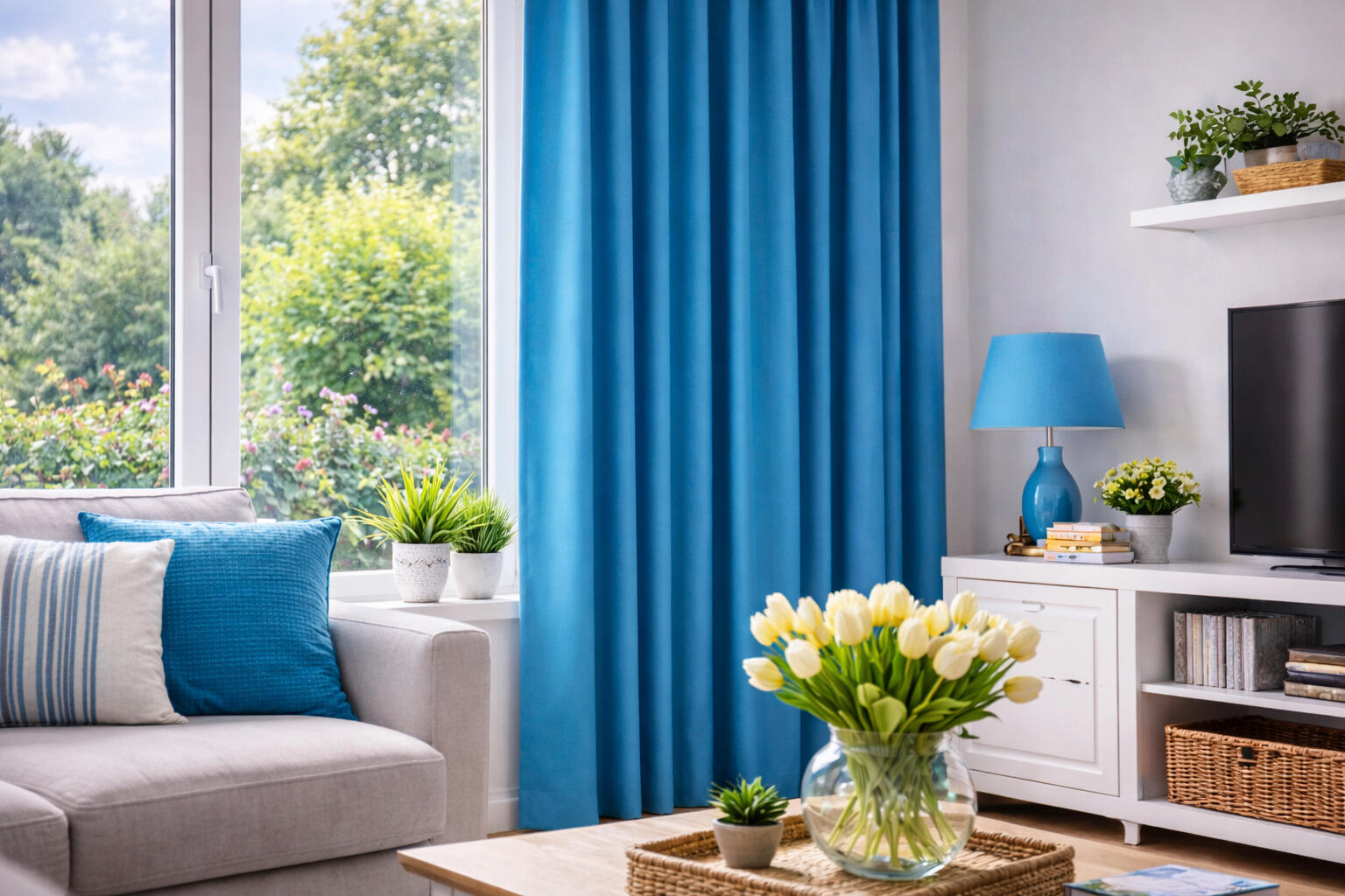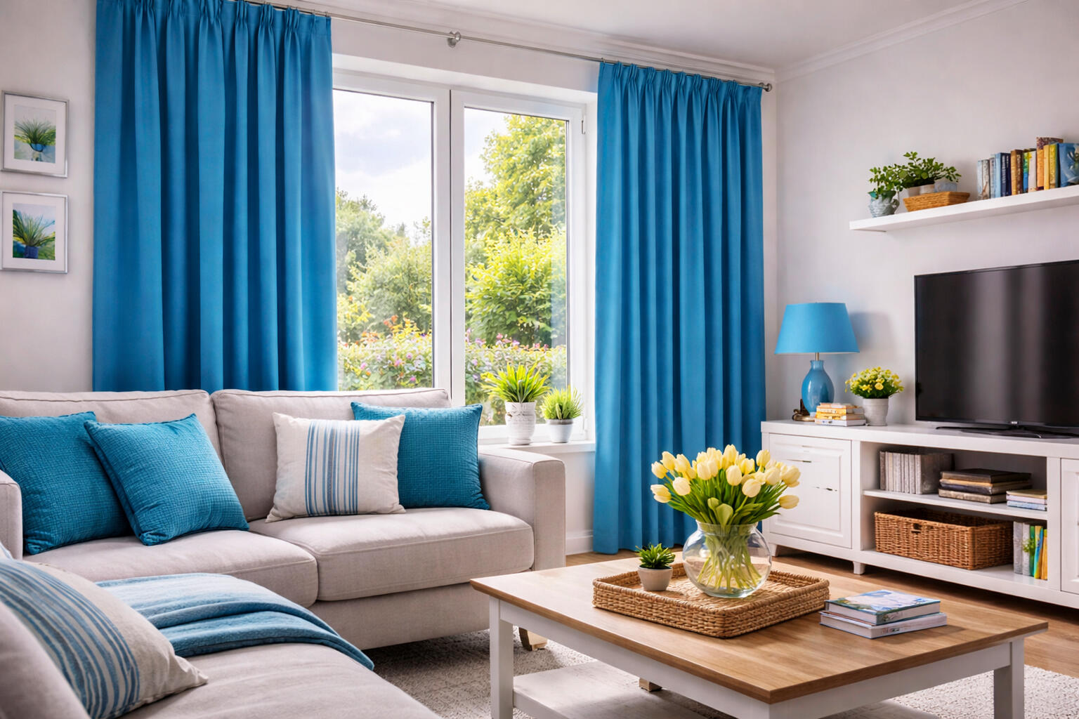 Gordijn Velora is een prachtige keuze voor wie sfeer, comfort en kleur wil samenbrengen in het interieur. Op de afbeeldingen zie je hoe dit gordijn een ruimte een warme en verzorgde uitstraling geeft. Velora komt naar voren in twee sprekende kleuren: een frisse, heldere blauwtint en een warme paarstint. Beide kleuren geven de ruimte een eigen karakter en laten zich mooi combineren met lichte meubels, zachte woontextiel en natuurlijke accenten.