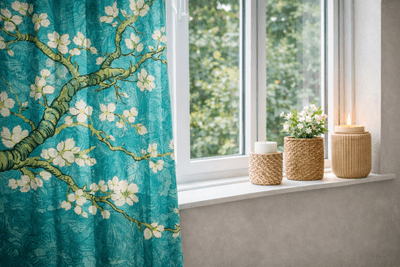 Wauw, wat prachtig! Het gordijn Almond Blossom met de beroemde schildering Amandel Bloesem van Vincent van Gogh! Bij GordijnenWinkel.nl zijn we zeer trots op onze eigen productie gordijnstoffen met dit iconische ontwerp. De stof is extra breed met 280 cm, wat zorgt voor minimale naden in het gordijn. De kleuren variëren van het originele turquoise tot groen, rood, antraciet, oker en ecru. De grote bloesemtakken tegen een blauwe lucht waren een favoriet onderwerp van Van Gogh, Amandelbomen bloeien vroeg in de lente en symboliseren nieuw leven, wat dit gordijn een prachtige betekenis geeft.