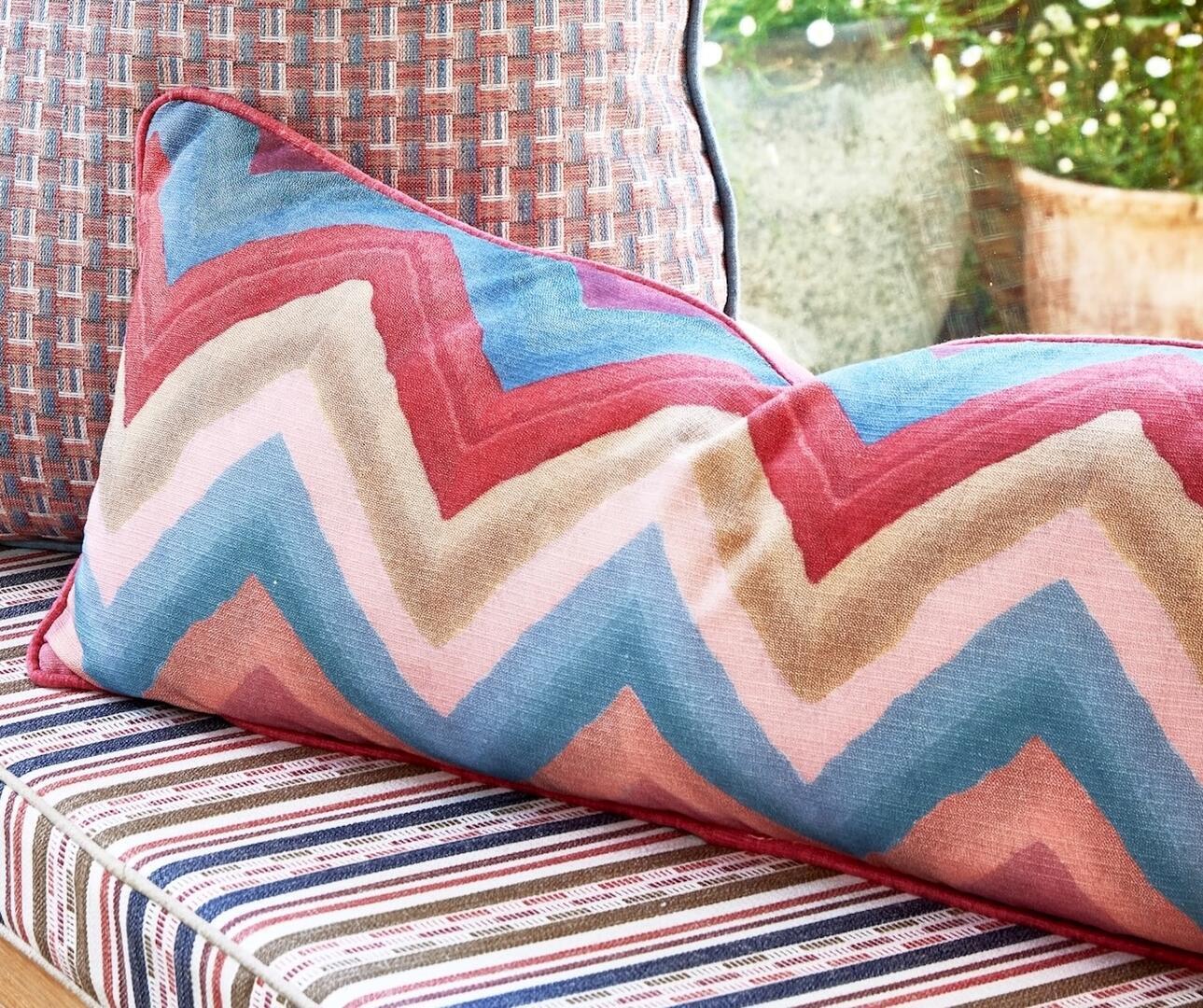 Het gordijn Zendaya met het zigzagmotief biedt een eigentijdse uitstraling en is een veelzijdige keuze voor verschillende interieurs. Het zigzagpatroon, dat al meerdere decennia populair is, krijgt hier de aandacht die het verdient door de fijne plooivalling die het gordijn krijgt. De stof, samengesteld uit 20% linnen en 80% katoen, voelt zacht en soepel aan en valt mooi in geplooide vormen, zoals te zien op de sfeerfoto. Het patroon bestaat uit rijen van shuttles in bijpassende kleuren die samen een levendig symmetrisch ontwerp vormen dat zeker tot de verbeelding spreekt. Deze gordijnen zijn verkrijgbaar in vijf kleuren: de kleur zoals op de sfeerfoto, een rustige zandkleur, een koele lichtblauw, terracotta en een uitvoering met groentinten.