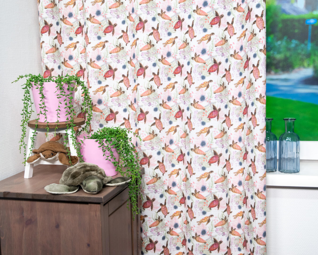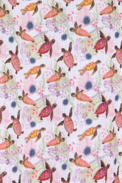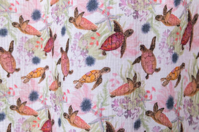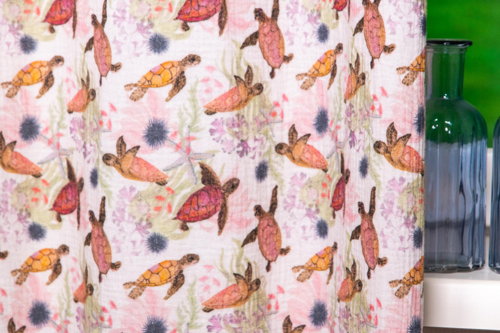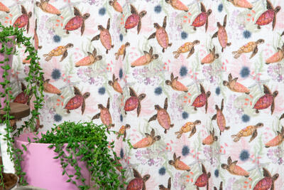 Dat geldt zeker ook voor deze gordijnstof met de naam Hydro Turtle, een unieke gordijnstof met een dieren dessin.