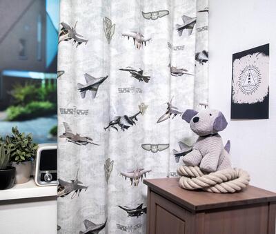 🛩️ Geef de slaapkamer van je stoere jongen een vliegende start met dit vliegtuigen gordijn! Dit gordijn toont verschillende gevechtsvliegtuigen die haarscherp en levensecht digitaal geprint zijn op katoenen stof. Voor extra comfort en functionaliteit bieden we tijdens het bestelproces de optie "Voering" aan. Met de voering geniet je niet alleen van extra isolatie en verduistering, maar het houdt ook de kou buiten tijdens de wintermaanden en zorgt ervoor dat de warmte in de zomer buiten blijft. Naast deze voordelen werkt de voering ook geluidsisolerend en beschermt het tegen verkleuring door zonlicht. 🌟✈️
