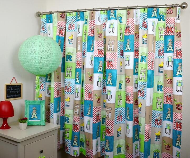 Leuk! Leer de letters van het alfabet op een speelse manier. Echt een gordijn om de kinderkamer iets vrolijks te geven. Leverbaar in 2 frisse kleuren voor jongens en meisjes en door de stofsamenstelling ook goed lichtecht. Als extraatje om het kamertje hélmaal af te maken, kun je van dezelfde stof ook kussens mee bestellen.
