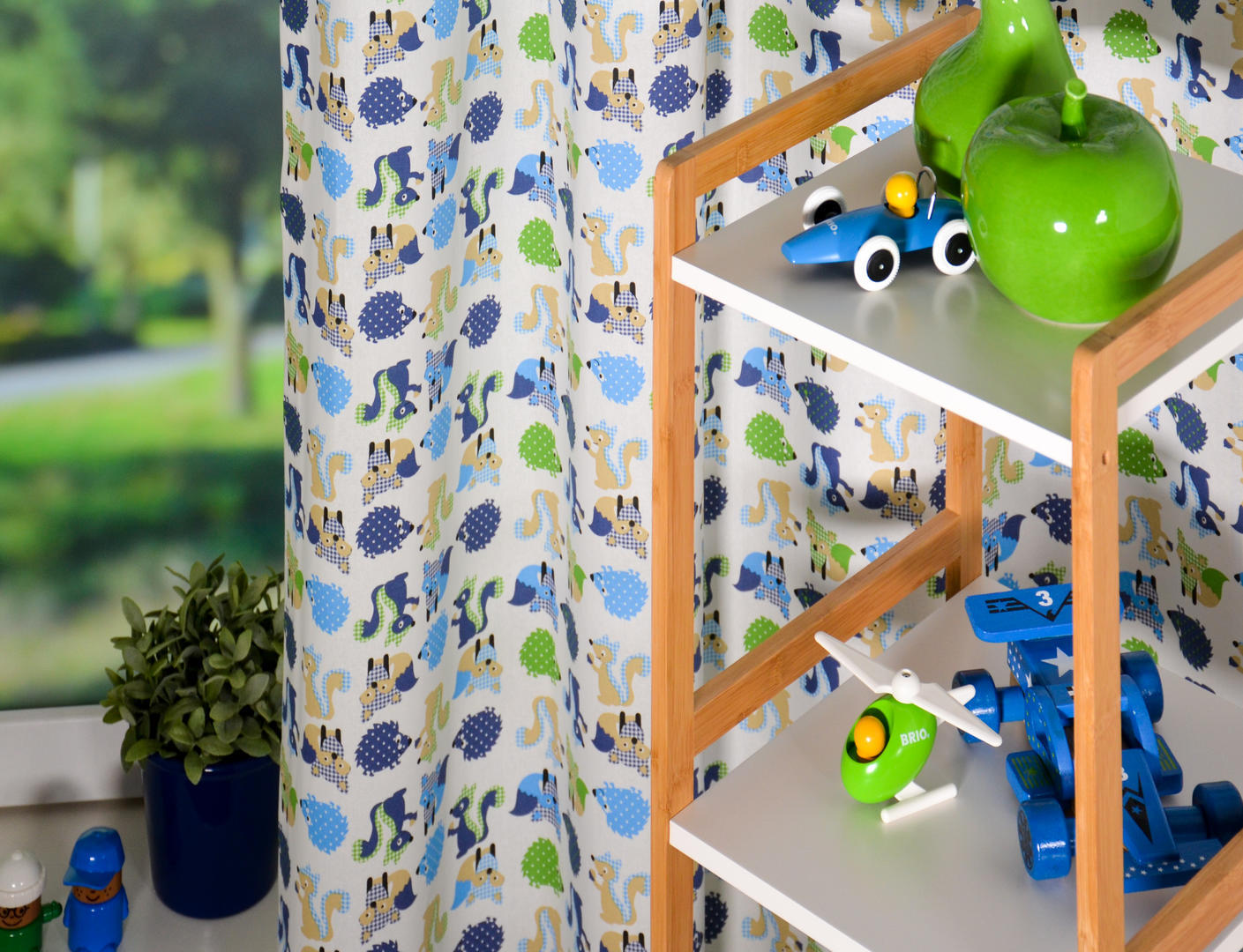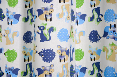 Schattige bosdiertjes kleuren dit gordijn. Speels om & om gedrukt, want ‘mixed up’ is juist extra leuk! Rodent betekent in het Engels knaagdier, maar ook vosje en egel (allen zo’n 5 cm groot) doen gezellig in de voorstelling mee. De print is op de voorzijde van de matte, fijn geweven katoen gedrukt. De ondergrond is bij alle 3 de kleurpaletten warm-wol-wit. Voor de jongens en meisjes slaapkamer perfect te combineren met één wandje geruit- of stippenbehang. Voor verduistering kan je dit gordijn extra laten voeren. Val jij voor al deze vrolijke kraaloogjes?