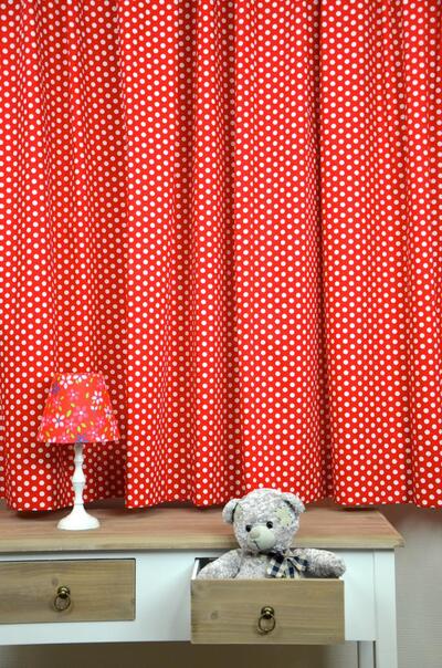 We tonen hier het gordijn Dot! Deze soepele gordijnstof is bedrukt met een speelse stippenprint en is verkrijgbaar in maar liefst 19 prachtige kleuren. De intense kleuren blijven lang mooi doordat de stof tot diep in de vezel is bedrukt. Niet alle kleuren zijn altijd direct op voorraad, dus als je zeker wilt zijn van een snelle levering, is het verstandig om van tevoren informatie in te winnen. Tijdens het bestelproces heb je ook de mogelijkheid om te kiezen voor een extra voering, die zorgt voor isolatie en verduistering. In de winter houdt de voering de kou buiten en in de zomer weerkaatst hij de warmte, terwijl het ook helpt met geluidsisolatie en het voorkomen van verkleuring door zonlicht.