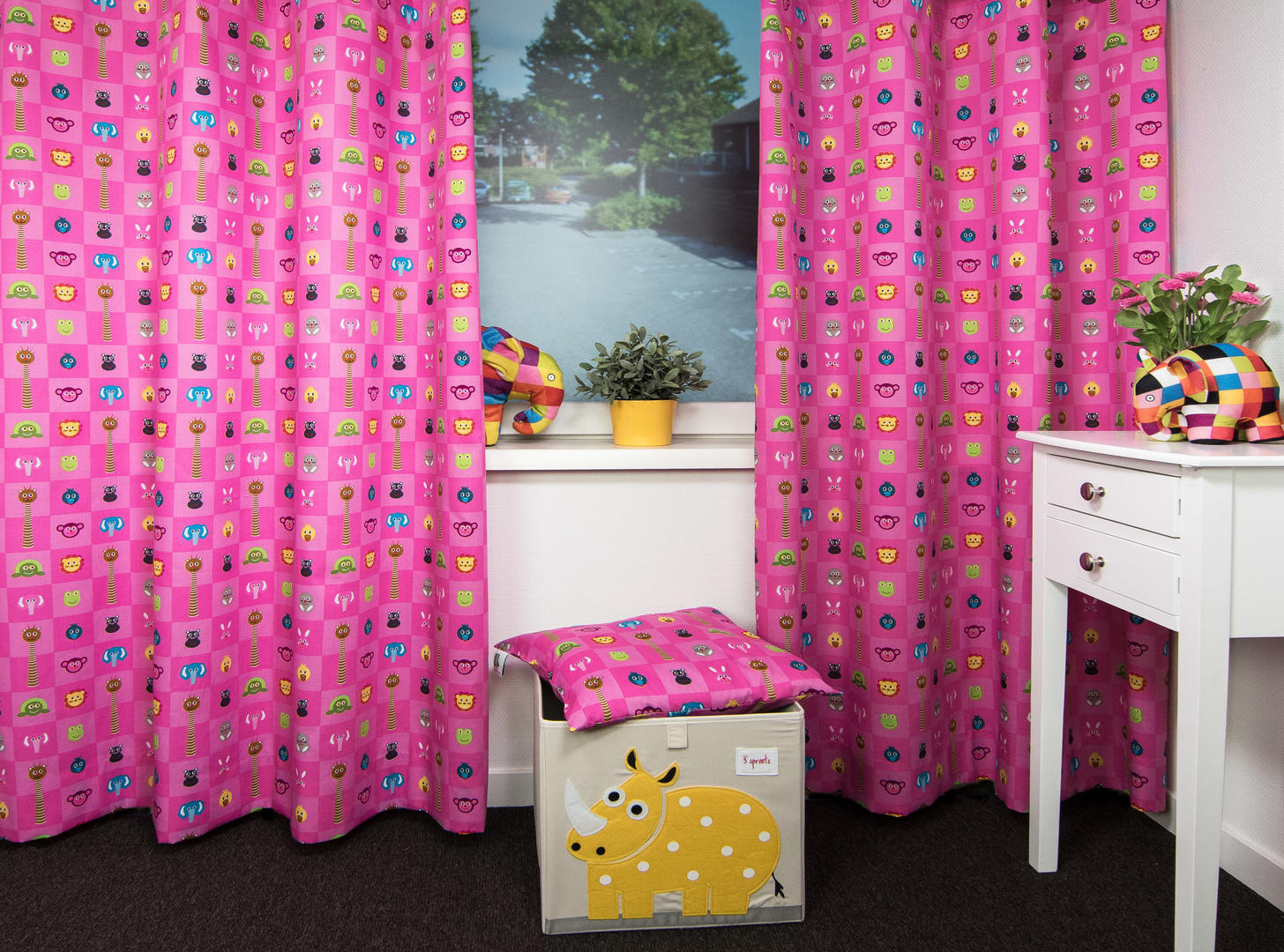 Wat een vrolijke dieren kijken naar jou! Het lijkt bijna alsof zij willen zeggen: Welkom op je slaapkamer. De beestjes zijn gedrukt in de vierkanten van 6 x 6 cm. De turquoise kleur kan zowel voor de meisjes- als jongenskamer. Ook leverbaar in drie andere vrolijke kleuren, allemaal even sprankelend en lief. Ook leverbaar als vouwgordijn. Voor extra functionaliteit zoals isolatie en verduistering, kun je tijdens het bestelproces kiezen voor de optie "Voering". De voering zorgt ervoor dat je kamer in de wintermaanden lekker warm blijft en in de zomer juist koel. Bovendien dempt de voering geluid en beschermt het gordijn tegen verkleuring door zonlicht.