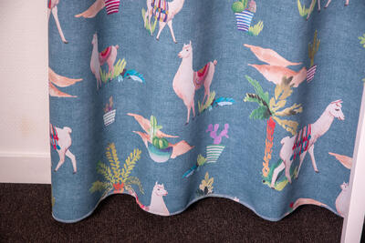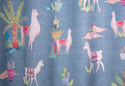 Het kindergordijn Lama is een speelse en opvallende keuze voor de kinderkamer. Op de stof zijn schattige lama's afgebeeld, die kleurrijk versierd zijn met kleden die doen denken aan de prachtige weefkunsten uit het verre oosten. Het kindergordijn Lama is verkrijgbaar in drie kleurstellingen: roze, blauw en lichtgroen. Deze kleuren zijn vrolijk en passen goed bij een kinderkamer. Je kunt de gordijnstof perfect afstemmen op de rest van de inrichting en een speelse en levendige sfeer creëren.