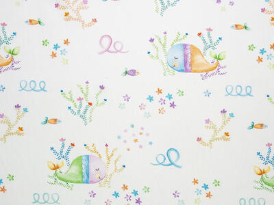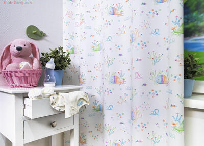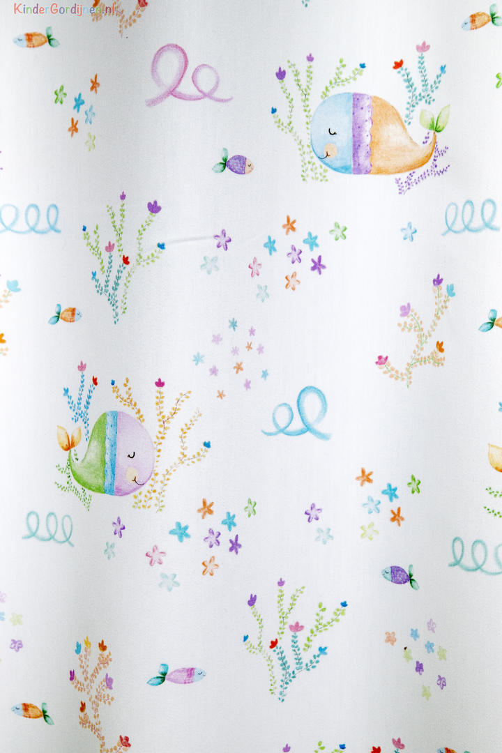 Uniek kindergordijn in zachte pastelkleuren, luchtig & lieflijk! Pastel wordt veel gebruikt voor (jonge) kinderkamers omdat het zacht en vriendelijk overkomt. Wanneer je ‘de pastel’ méér power wilt geven, kan je een tint vanuit het gordijn als muurverf gebruiken. Daar creëer je een fraaie balans mee. De stof is dicht geweven, valt soepel en is door zijn samenstelling kleurecht. De tekeningetjes van bijv. het walvisjes zijn +/- 10 cm groot en gedrukt op de warm-witte ondergrond. Voor extra verduistering optie voeren even aanvinken.