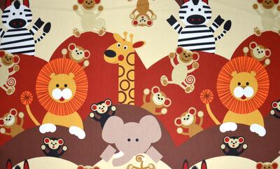 TE GEK, deze nostalgische beestenboel! Héérlijk wegdromen bij deze Afrikaanse dieren. Het patroon is royaal, waardoor het gordijn uitstekend voor grotere raam oppervlaktes geschikt is. De olifant is zo’n 20 cm groot, de giraffe met haar ranke hals natuurlijk wat langer. De dieren zijn gedrukt op matte katoen en desgewenst even verduisterend voeren.