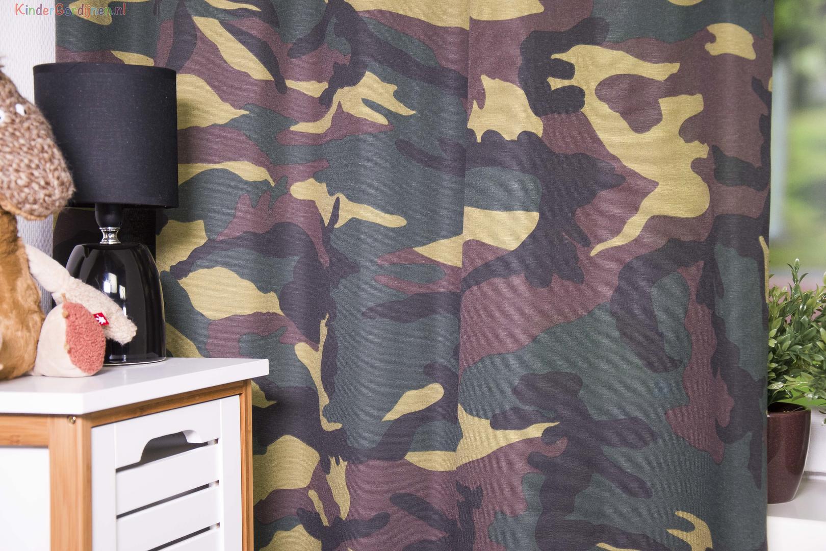 Dit camouflage gordijn is geïnspireerd op het kleurgebruik van de Koninklijke landmacht of kort gezegd: een stoer legergordijn. Het leger en defensie spreken tot de verbeelding, werken in uniform heeft altijd iets bijzonders. The Dutch Army maakt gebruik van groene en bruine camouflage kleuren, dit gordijn is leverbaar in méér variaties. Ook de grijstinten variant , die ook wel ‘urban camouflage’ genoemd wordt. De print is op de voorzijde gedrukt op de matte stof. Wil je extra donker slapen in je eigen army vertrek , dan kan je dit gordijn laten voeren. Extra leger accessoires maken het thema natuurlijk helemaal compleet. Kies jij voor dit typische outdoor gevoel?