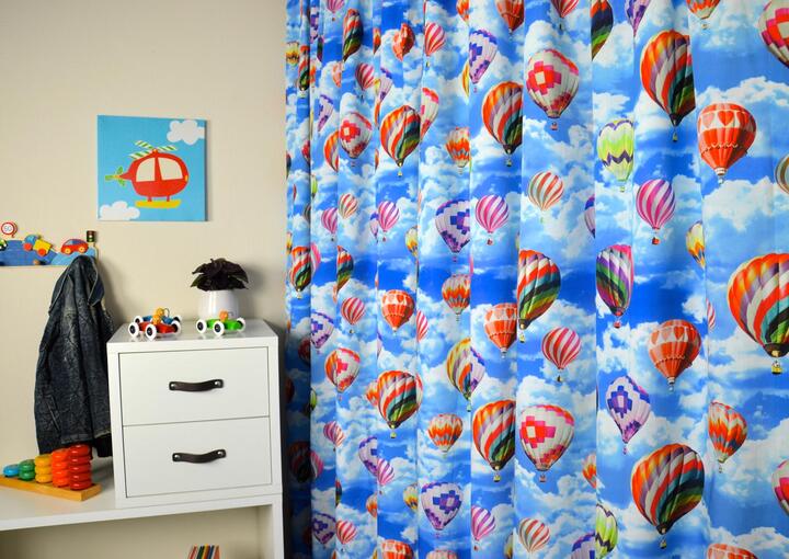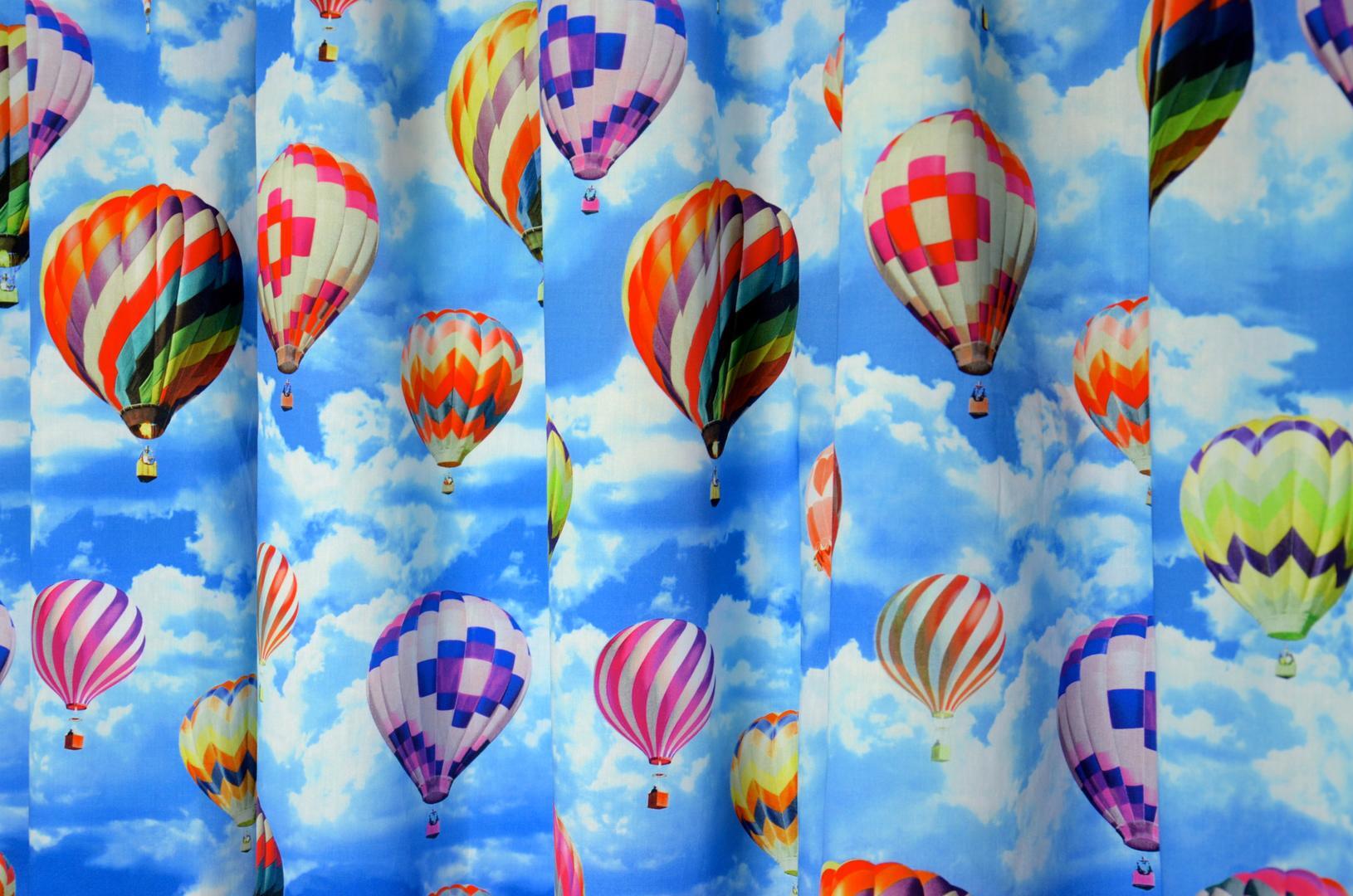 Dit is ECHT “the sky is the limit!” Door deze digitale druktechniek lijkt de lucht en luchtballonnen fotografisch echt! Wegdromen in je eigen slaapkamer, het kan met dit gordijn. De print wordt gemaakt op heel soepelvallend katoenen doek, die voor het kleurbehoud gevoerd kan worden. De grootte van de luchtballonnen varieert van 6 tot 14 cm. Met wie wil jij naar boven zweven?
