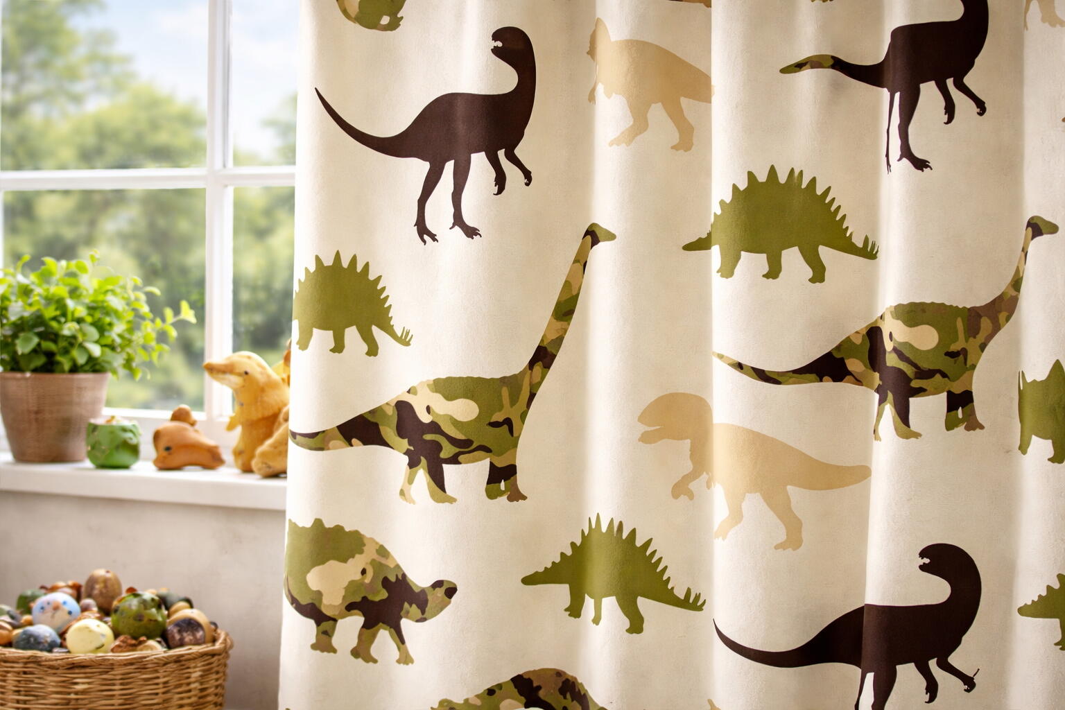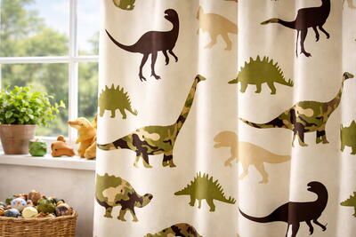Gordijn Dino’s is zeer geschikt voor kinderkamers en speelruimtes en laat zich goed combineren met natuurlijke materialen, zachte groentinten en lichte houtsoorten. Wil je het dinosaurus-thema verder doorvoeren, dan maken bijpassende dino kussens het geheel extra compleet.