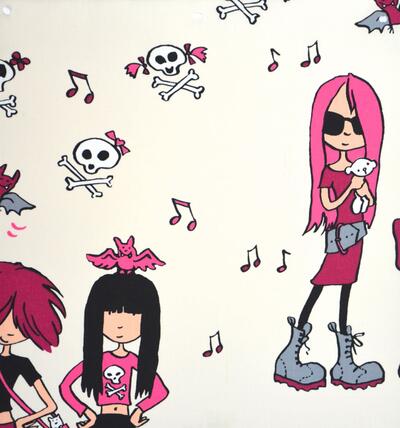 Stoer meisjesgordijn voor echte rockchicks! U kunt de gordijnstof los bestellen of gratis laten verwerken tot kant-en-klaar kindergordijn.