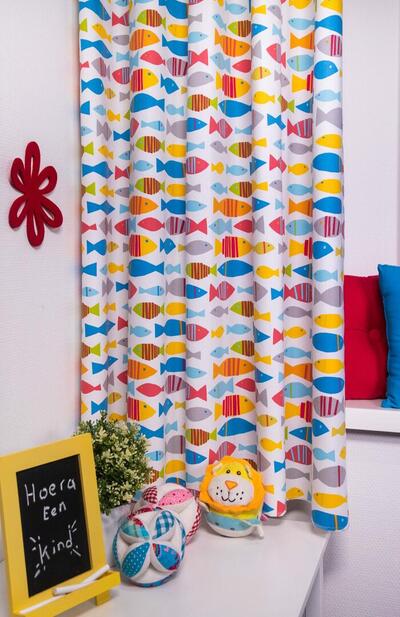 Op zoek naar een vrolijk en speels gordijn voor de kinderkamer? Ontdek FinnFish!🎏 Gemaakt van dikke kwaliteitsstof, dit gordijn is bedrukt met schattige kleine visjes in levendige kleuren. Beschikbaar in drie prachtige kleurstellingen: Multicolor, ocean blue en butterscotch met een vleugje oranje. Perfect voor een baby- of peuterkamer! Personaliseer jouw gordijn met de optie "Voering" voor extra isolatie en verduistering. Heb je nog vragen? dan sta ik altijd voor je klaar!