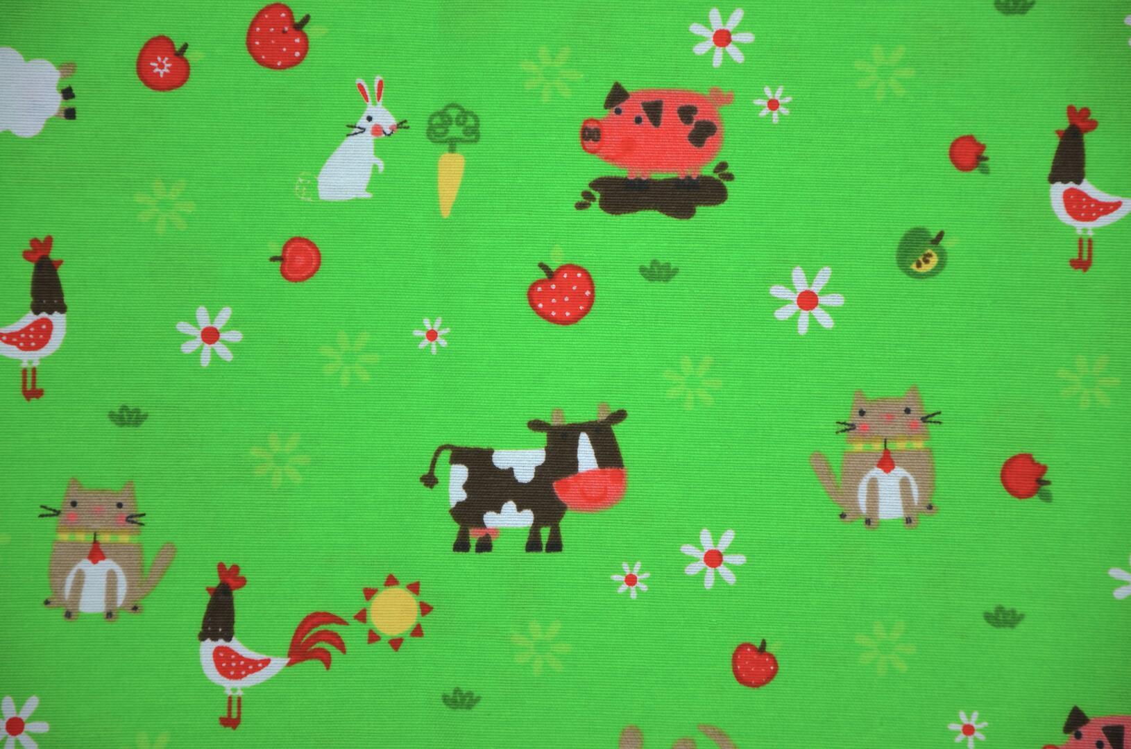 De haan kraait, de koe loeit en het varkentje rolt zich nog eens lekker om in de modder. Een gordijn dat een verhaal vertelt! Er is zoveel te zien. Al die verschillende boerderij beesten willen jou misschien wel een ‘welterusten verhaaltje’ vertellen. Of je laat je fantasie de vrije loop en bedenkt: “wat gaat er vandaag in de wei gebeuren?” De beestjes zijn +/- 4 cm groot en gedrukt op matte, sportieve grasgroene stof. Tip: voor verduistering en kleurbehoud laat dan uw gordijn voeren met een verduisterende voering!