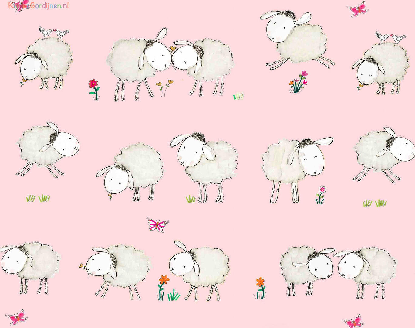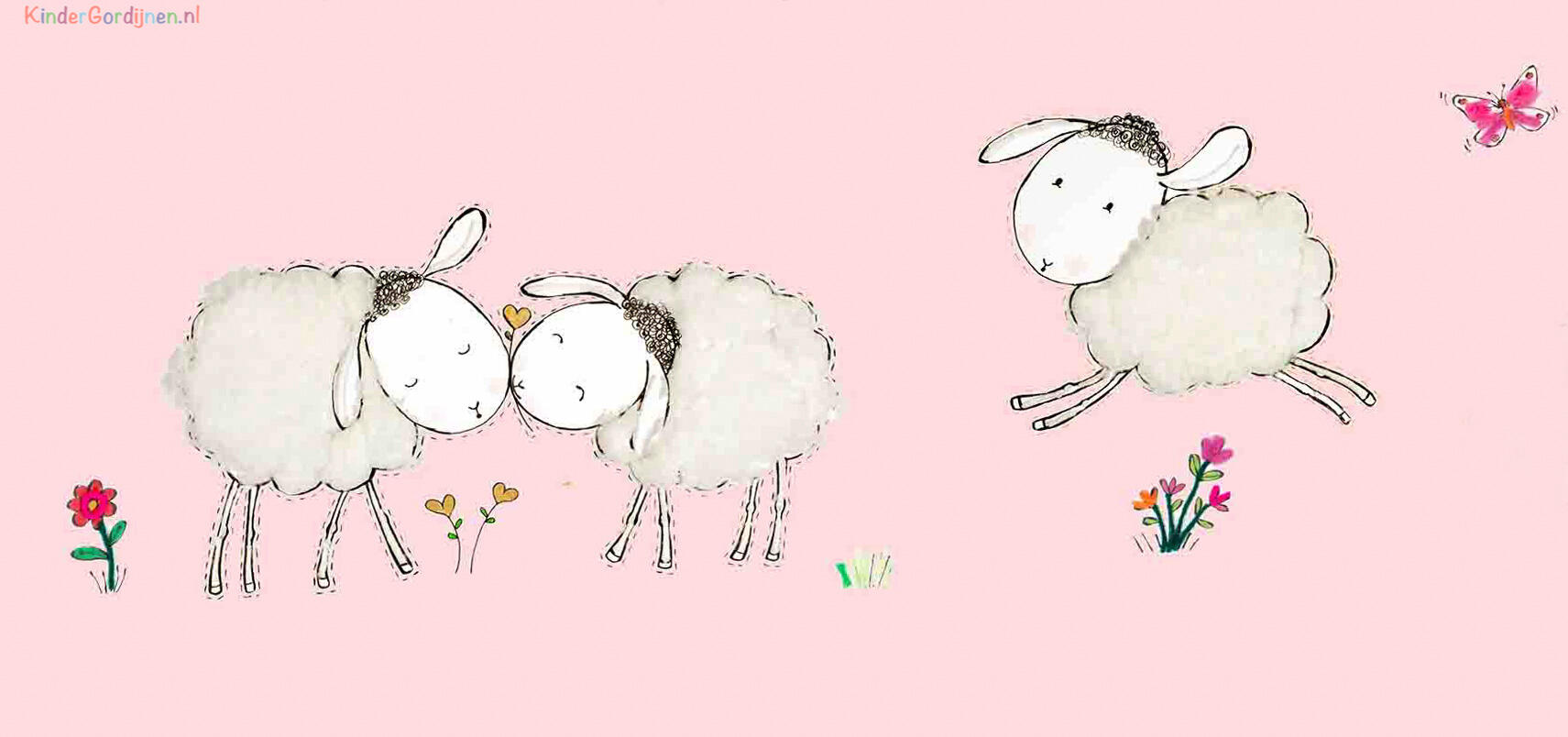 Een súper schattig schaapjesgordijn voor de kinderkamer, ontworpen door Hanneke de Jager. Deze beeldend kunstenares is schrijver en tevens illustrator van een aantal bijzonder leuke kinderboeken. Zij omschrijft haar stijl als: fris, kleurrijk, levendig, speels en zonnig. Door gebruik van verschillende materialen zoals stofjes van de markt, knopen en gebreide truien, geeft zij haar illustraties iets unieks. In het patroon zie je namelijk de weergave van die leuke details van de verschillende texturen. Zo heeft het schaapje een bijna aaibare wollen vacht.