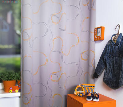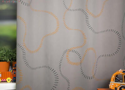 Dat geldt zeker ook voor deze gordijnstof met de naam Sleepers (verduisterend), een unieke gordijnstof met een oranje dessin.