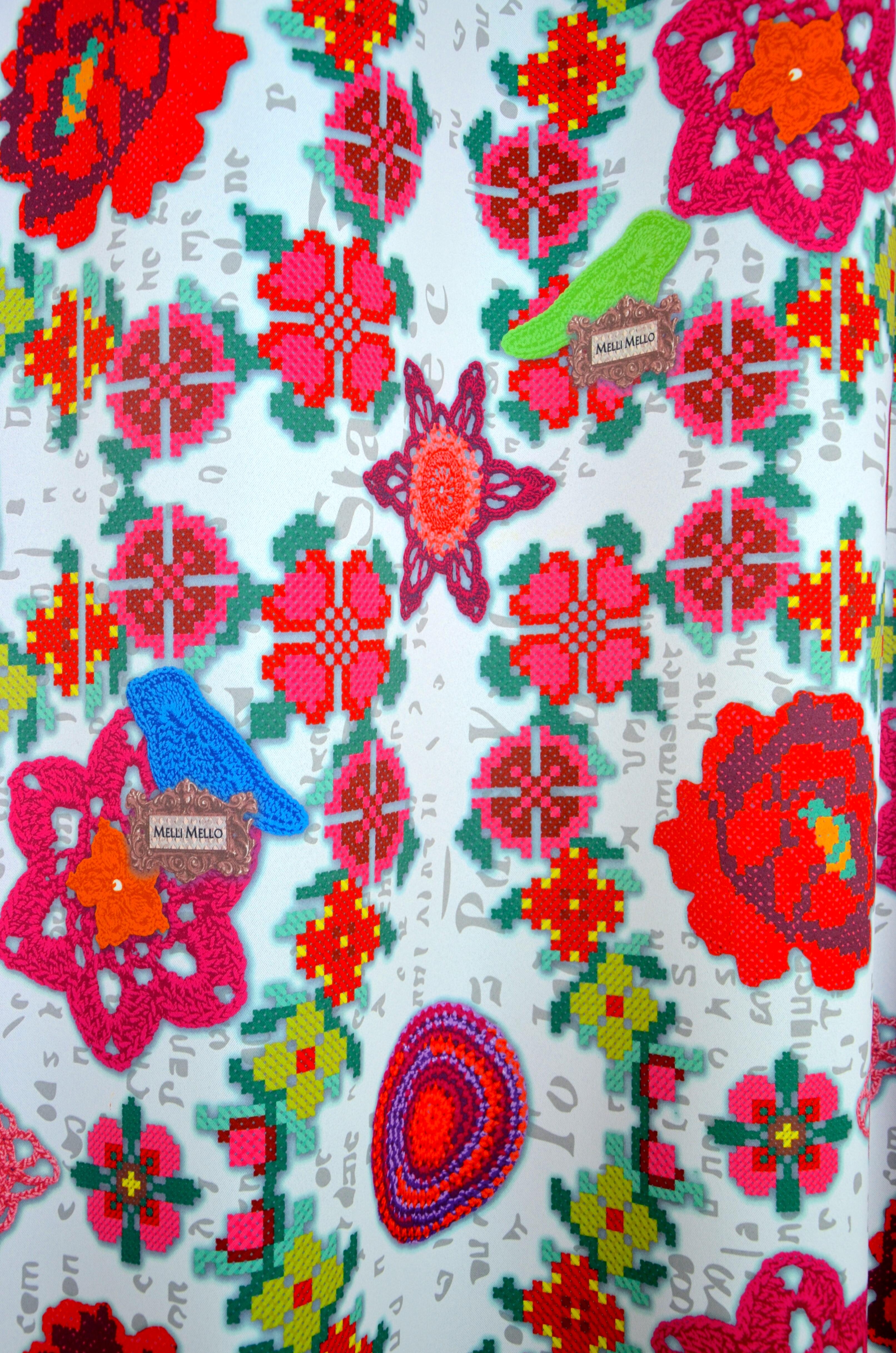 Een uniek gordijn van het HIPPE merk MELLI MELLO! Het is vrolijk, kleurrijk en met een prachtige aqua-blauwe ondergrondkleur. De prints zijn op een semi verduisterende stof gedrukt, waardoor het gordijn de slaapkamer prettig donker maakt. De achterzijde is egaal gebroken wit. Het patroon stelt fraai haakwerk en breisels voor, wat een warme textuurlook geeft. De paars-roze ster is 18 cm groot. Dit is een echte eyecatcher voor jouw meidenkamer!