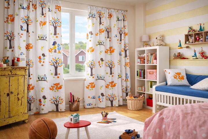 De print is ontworpen om lang mee te gaan: geschikt voor pasgeborenen, maar net zo goed voor peuters, kleuters en kinderen tot ongeveer 10 jaar. De illustraties zijn vriendelijk, zacht van vorm en niet kinderachtig, waardoor het gordijn mooi meegroeit met het kind.