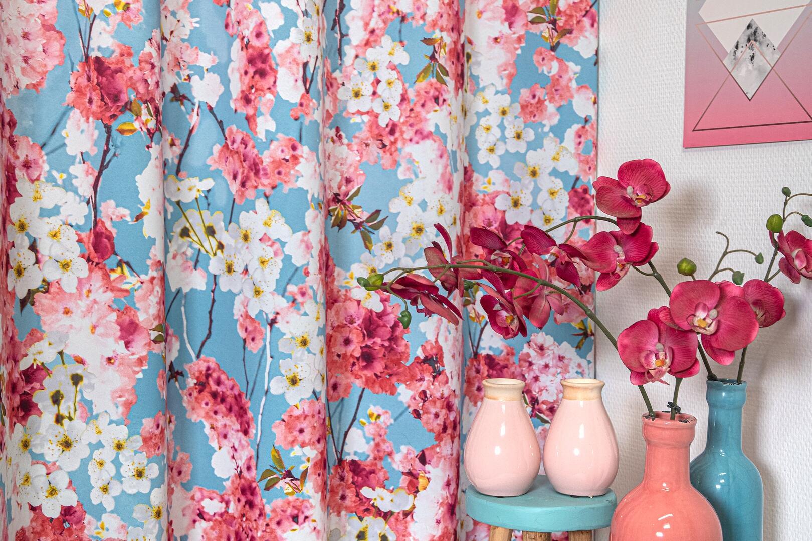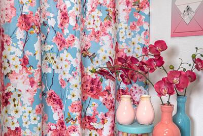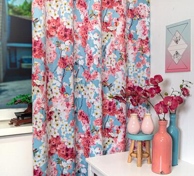 Het Gordijn Kersenbloesem laat de bekende Japanse Sakura-bomen prachtig tot leven komen. De bloemenprint is haarscherp afgebeeld, wat deze gordijnen tot een opvallend element in de kinderkamer maakt. We bieden hier drie aantrekkelijke kleurstellingen aan: sky blue, poedergroen en melon. Met onze ruime voorraad kunnen we zorgen voor een snelle levering. Deze gordijnen zijn al half verduisterend, wat betekent dat je alleen voor volledige verduistering een extra voering hoeft te kiezen, Natuurlijk biedt een extra voering ook isolatie tegen warmte, kou en geluid, en beschermd het gordijn tegen verkleuring door zonlicht. Wil je de stof eerst zien en voelen voordat je een op maat gemaakt gordijn bestelt? Vraag dan een knipstaal aan om de textuur en kleur te beoordelen. De staaltjes worden meestal dezelfde dag nog verzonden. Bij vragen sta ik altijd voor je klaar!