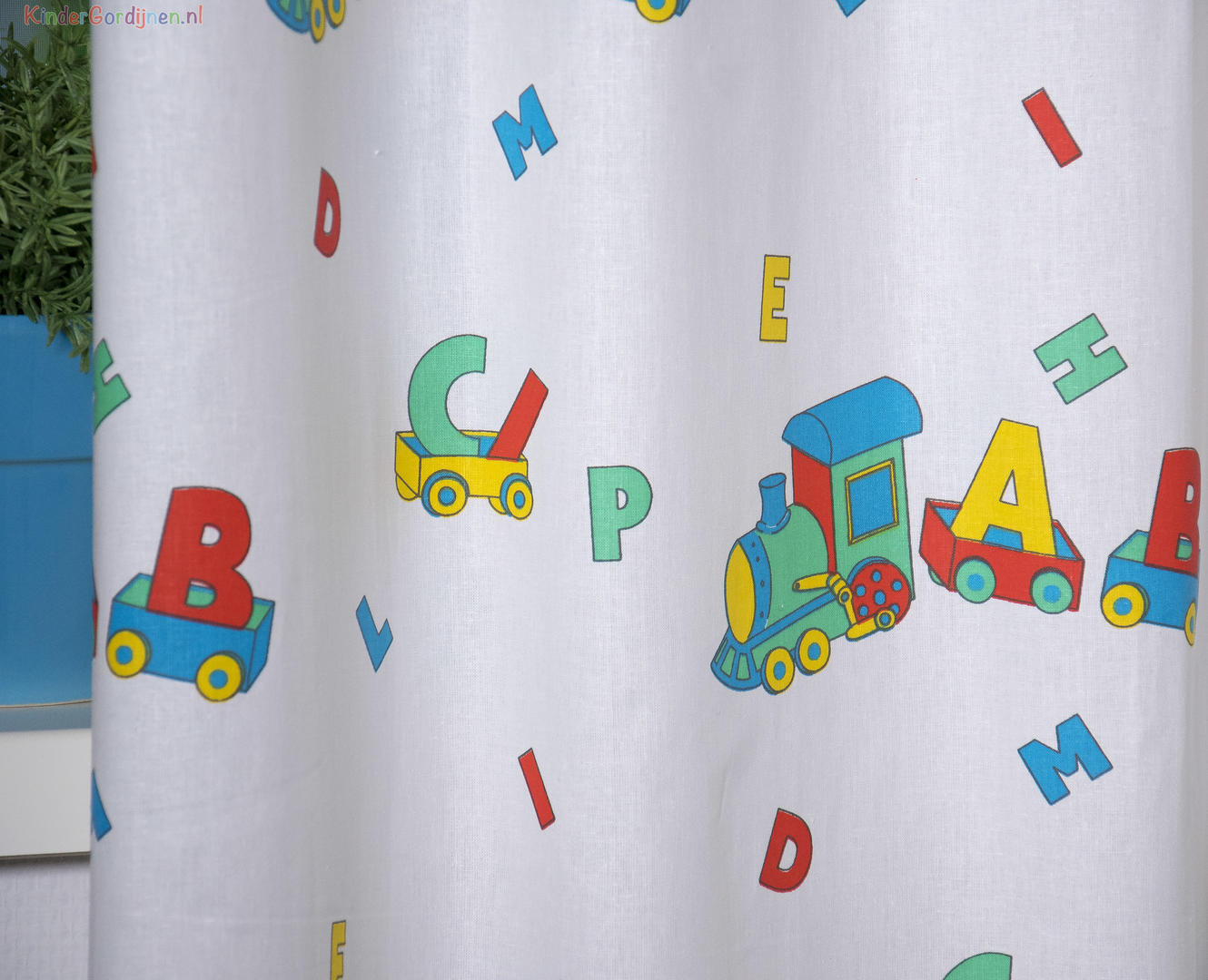 Deze gordijnstof met de naam Lettertrein is gemaakt van de beste materialen waardoor het gordijn mooi in de plooi valt.
