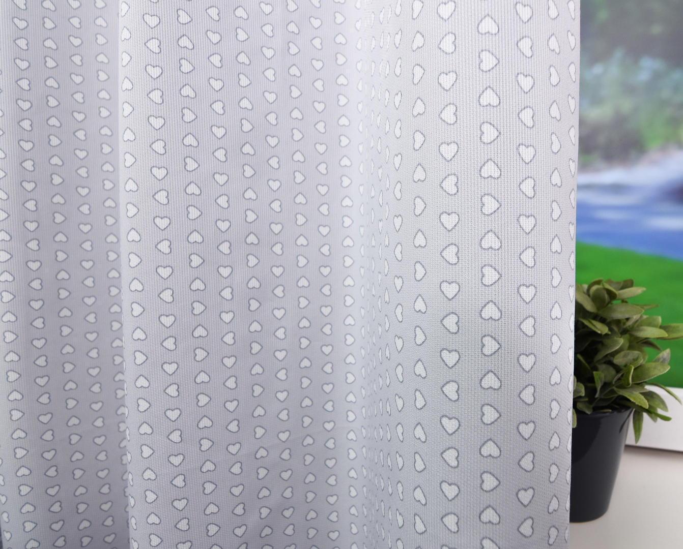 Prachtige zachte gordijnstof met kleine hartjes, veelal toegepast in de babykamer.