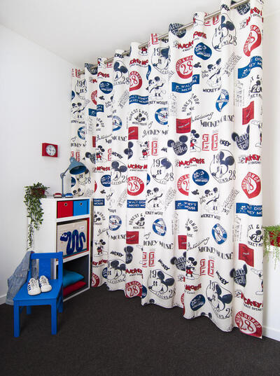 Mickey Mouse is inmiddels de 90 jaar gepasseerd, maar is nog altijd even jeugdig en vrolijk. Dit gordijn is helemaal van nu dankzij de mooie diepe retro kleuren en lettertypen. Geschikt voor een jongens- en meisjeskamer én de volwassen Disney-fan natuurlijk. De cirkel met Mickey erin is in doorsnede 16 cm, Mickey is 7 hoog.