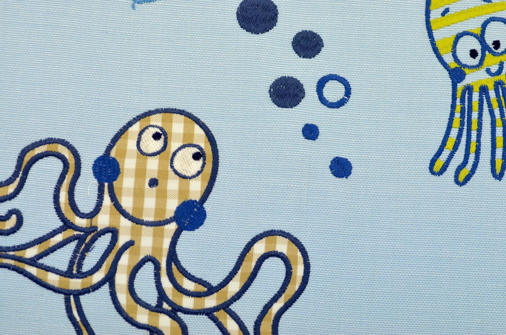 Octopus – geborduurd patchwork gordijn