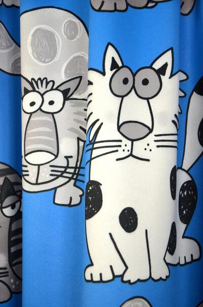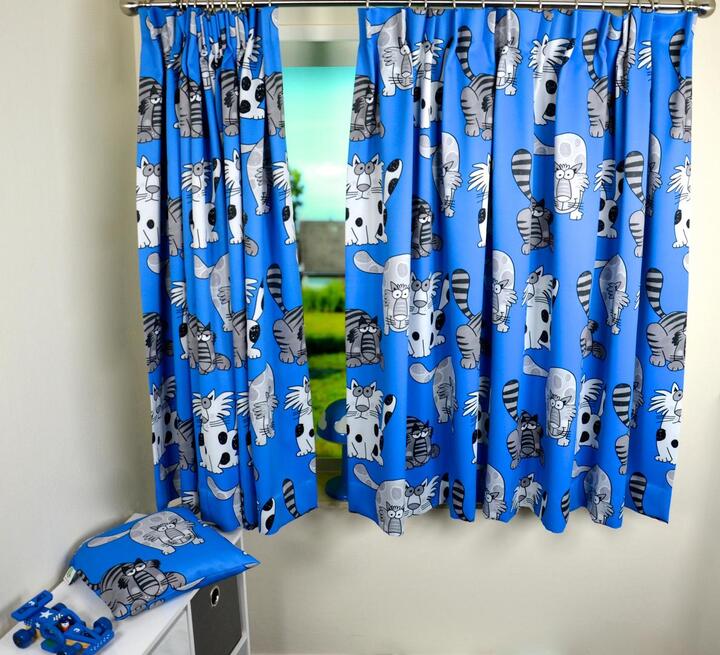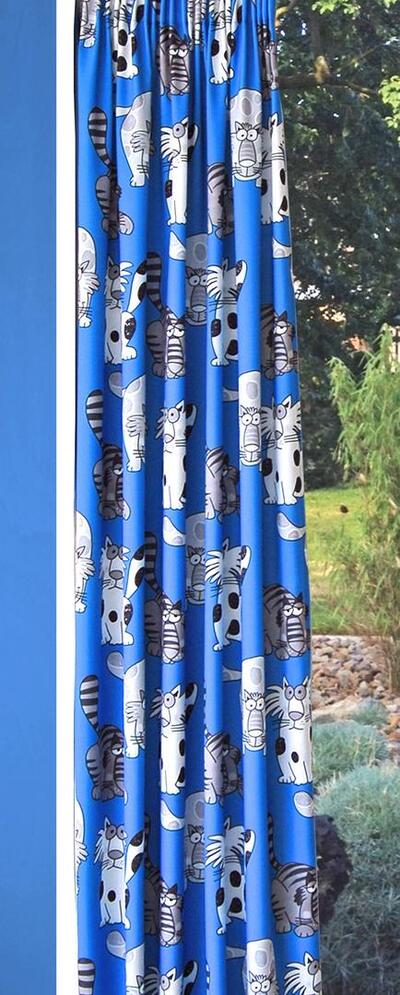 Uw (klein)kinderen zullen voortaan heerlijk slapen met deze verduisterende gordijnen vol gekke katten. En dan worden ze ook nog eens iedere ochtend vrolijk wakker! De speelse gordijnstof is verkrijgbaar in wit, blauw, roze en mosterdgeel.